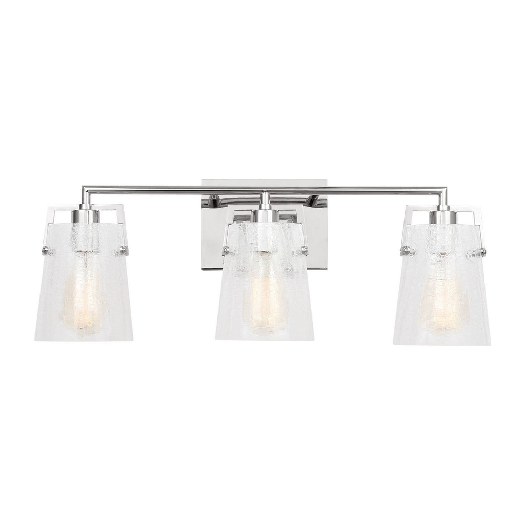 Add a bright burst of light where you need it most with the stylish Drew & Jonathan Crofton wall light, featuring a sleek rectangular metal backplate and crackle clear glass shade. Made to coordinate across a broader range of bath hardware and design styles, the Crofton is available in four popular finishes, Brushed Steel, Chrome, Midnight Black, and Satin Brass. This light looks great on its own or installed above a bathroom vanity, and the glass shade makes it ideal for filament bulbs. This fixture may be mounted in the up or down position, and is cETL listed for damp locations, making it the perfect lighting solution for any space.