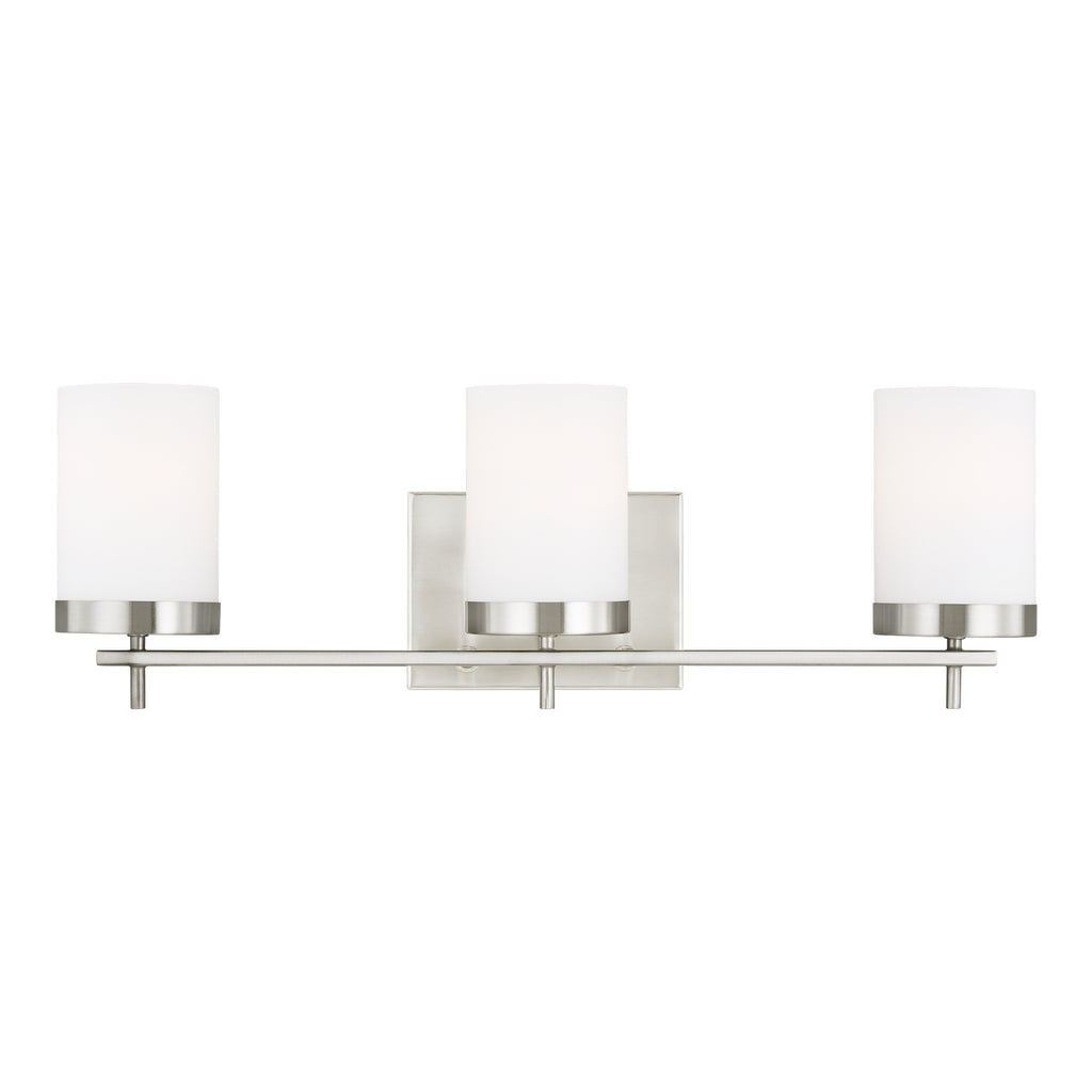The Zire three light vanity fixture in brushed nickel is an ENERGY STAR qualified lighting fixture that uses LED bulbs to save you both time and money. Zire embodies simple clean lines in three finishes that strike a perfect balance of elegant yet minimalist design.