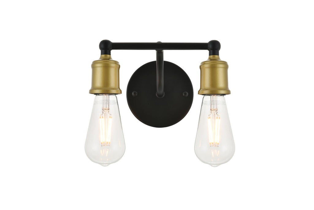 The classical elegance of the Serif collection wall lamp in a brass and black finish brings graceful allure. The arms--reminiscent of a classical font-- supports the 2 lights that emit a reassuring brilliance, and its gentle presence makes it a wonderful fixture to greet your guests at the entry way, illuminate your cabinets in the living room, or shine in the powder room.