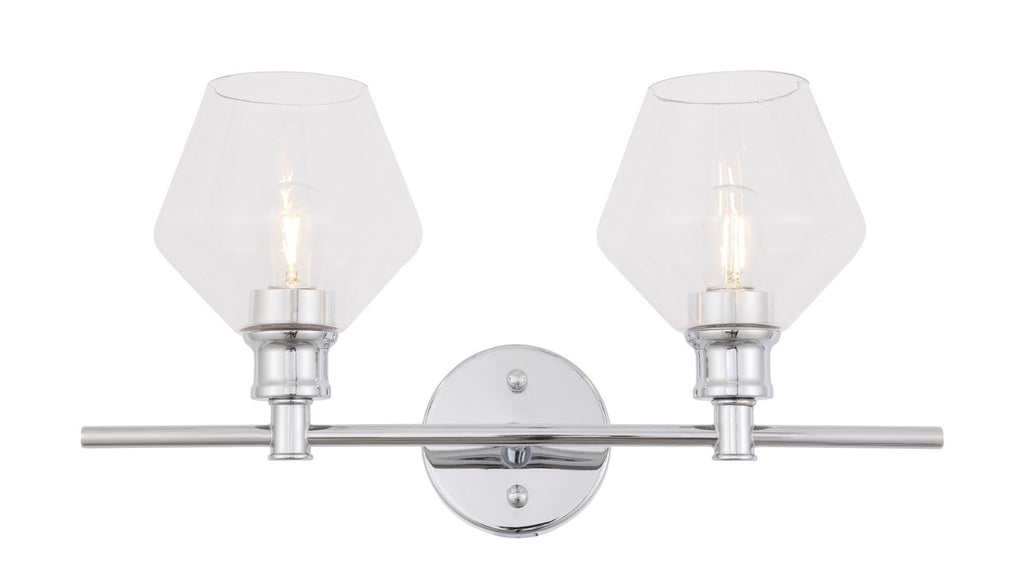 The Gene Collection of lights will be sure to have your guests admire your modern sense of style with the beautiful simplicity of its shape and form. The clean lines of the rhombus shaped shades create the juxtaposition of intricate simplicity, achieving a style that has both form and function. This wall lamp can be oriented facing up or down, but will always illuminate your room. Available in a brass, chrome, or black finish with either a clear or frosted rhombus glass shade, it is the perfect wall lamp to enhance your bathroom, foyer, or hallways, allowing you to always live in sleek contemporary style (light bulbs not included).