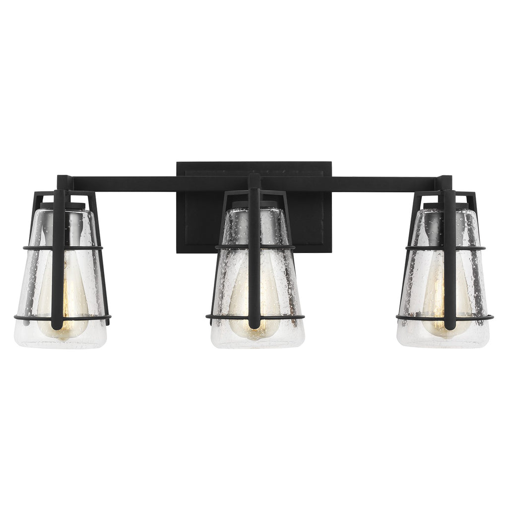 The Adelaide three light vanity fixture in midnight black provides abundant light for your bath vanity, while adding a layer of today's style to your interior design. Adelaide features Clear Seeded glass shades that subtly diffuse the lamping while allowing the exposed bulb to be a central design element of the fixture in a Midnight Black finish.
