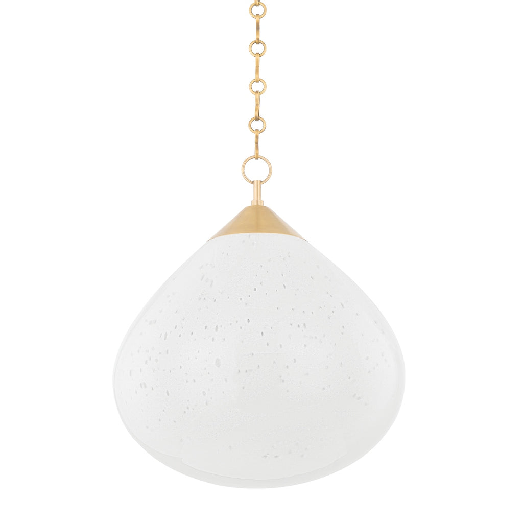 Semilla takes the basic beauty of a teardrop pendant and elevates it with opal seeded glass and a Vintage Brass cap and chainwork. The seeded glass shade is simply stunning when lit. With its soothing shape and luxurious materials, this pretty pendant is the perfect way to add a touch of elegance to any interior.