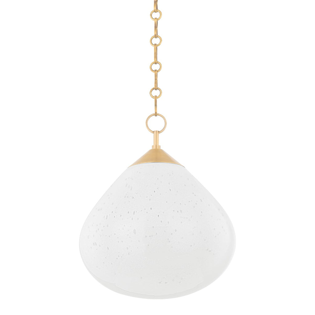 Semilla takes the basic beauty of a teardrop pendant and elevates it with opal seeded glass and a Vintage Brass cap and chainwork. The seeded glass shade is simply stunning when lit. With its soothing shape and luxurious materials, this pretty pendant is the perfect way to add a touch of elegance to any interior.