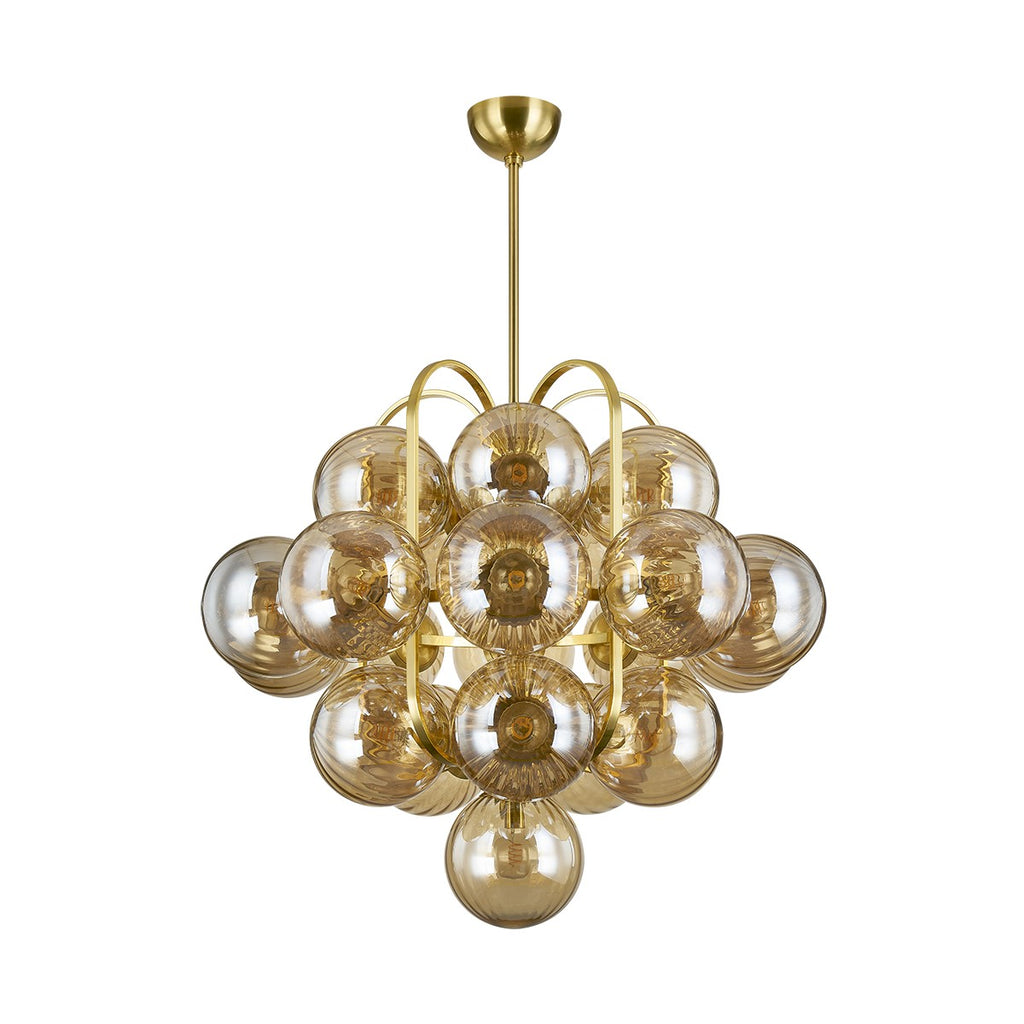 Like grapes on a vine, a cluster of glass orbs perch along the antique-inspired frame of Cronus. The ribbed, light bronze glass emits a warm glow, complemented by gleaming Vintage Polished Brass arches. Available as a 1-light wall sconce or 12 or 21-light chandelier, Cronus infuses a living or dining space with old Hollywood glamor.