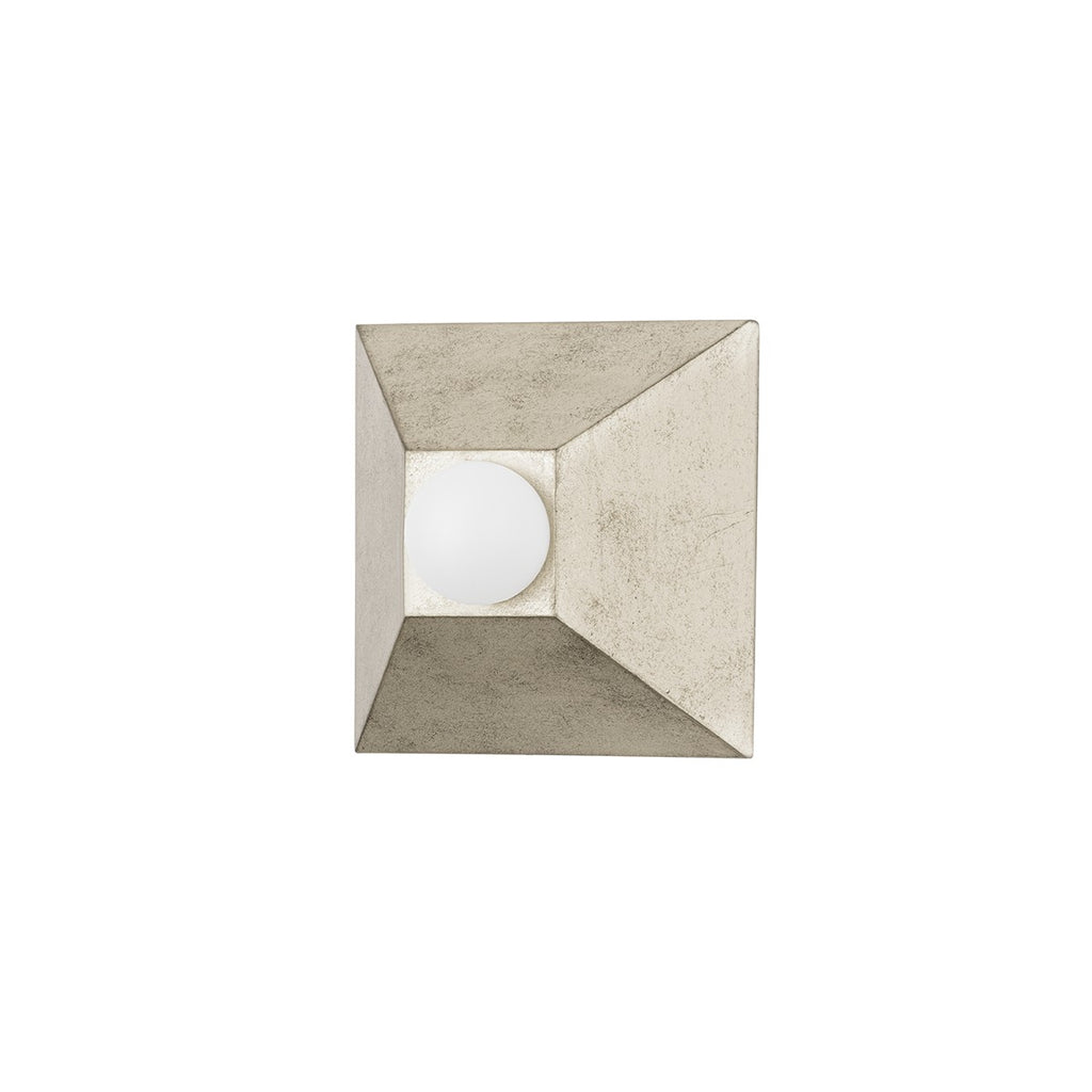 Playing with shapes, Max gives simple geometry maximum style. A series of pyramid bases supporting round globe lights come together to form squares and rectangles. The vintage gold or silver leaf finishes add to the design's overall Hollywood glam feeling. Whether in a flush mount, sconce or bath and vanity, Max adds a chic vibe to any space.