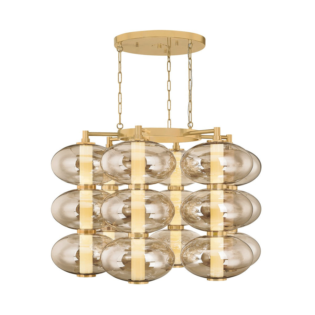 Drawing influence from the modernist era, Toulouse features sleek LED tubes surrounded by stacked oval-shaped glass orbs. The moody light bronze glass shades create bubble-like stacks, separated by Vintage Brass cuffs. Available as a sconce and a chandelier in two sizes, Toulouse is perfect for those who appreciate maximalist style with a contemporary twist.