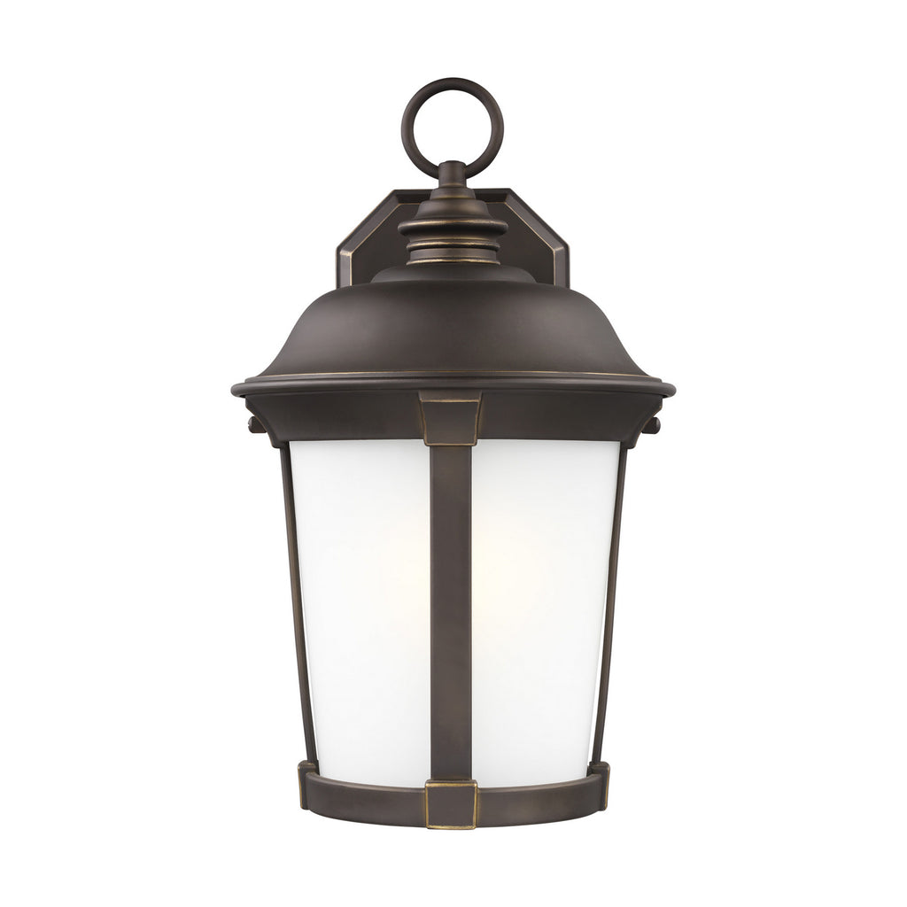 The Calder one light outdoor wall fixture in antique bronze creates a warm and inviting welcome presentation for your home's exterior. Timeless neo-classical style meets high-tech performance in the Calder Collection. Using an ornate style that echoes colonial lanterns but constructed in proprietary StoneStrong exterior, Calder will withstand harsh outdoor conditions for years to come. StoneStrong material is rust-proof and built to last in any outside environment, including coastal, dry, and harsh winter climates. StoneStrong is also backed by a robust warranty. Add a vintage classical look with the advantages of modern technology as an attractive and practical addition to any exterior. Available in Black and Antique Bronze finishes. All fixtures are available as ENERGY STARÂ-qualified and California Title 24 compliant.