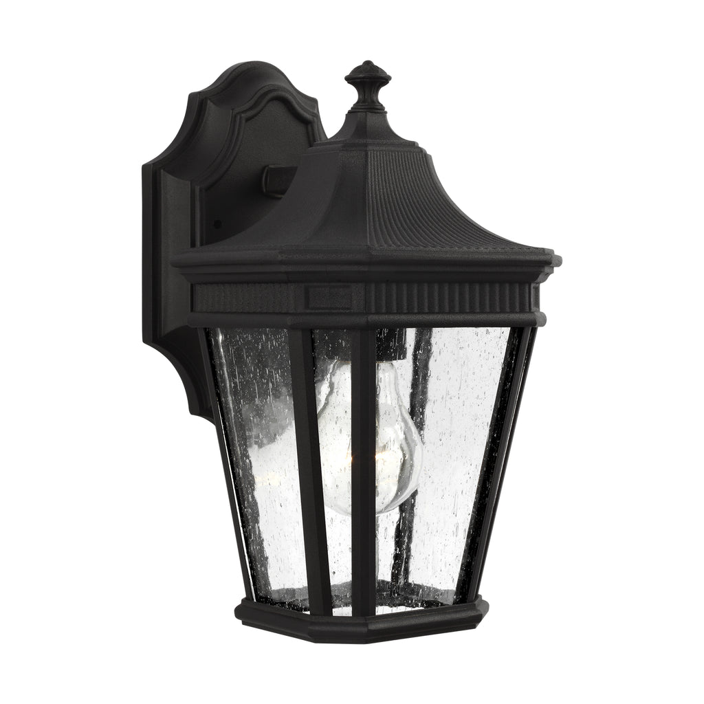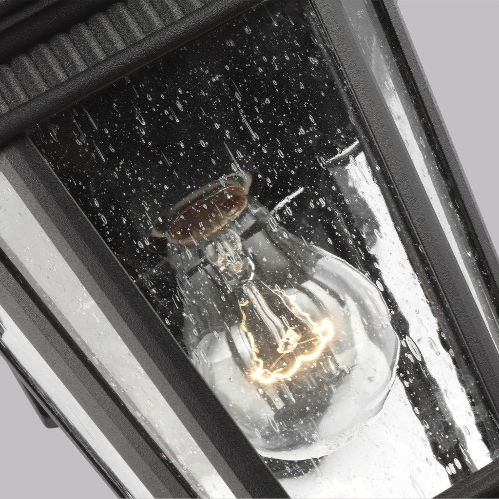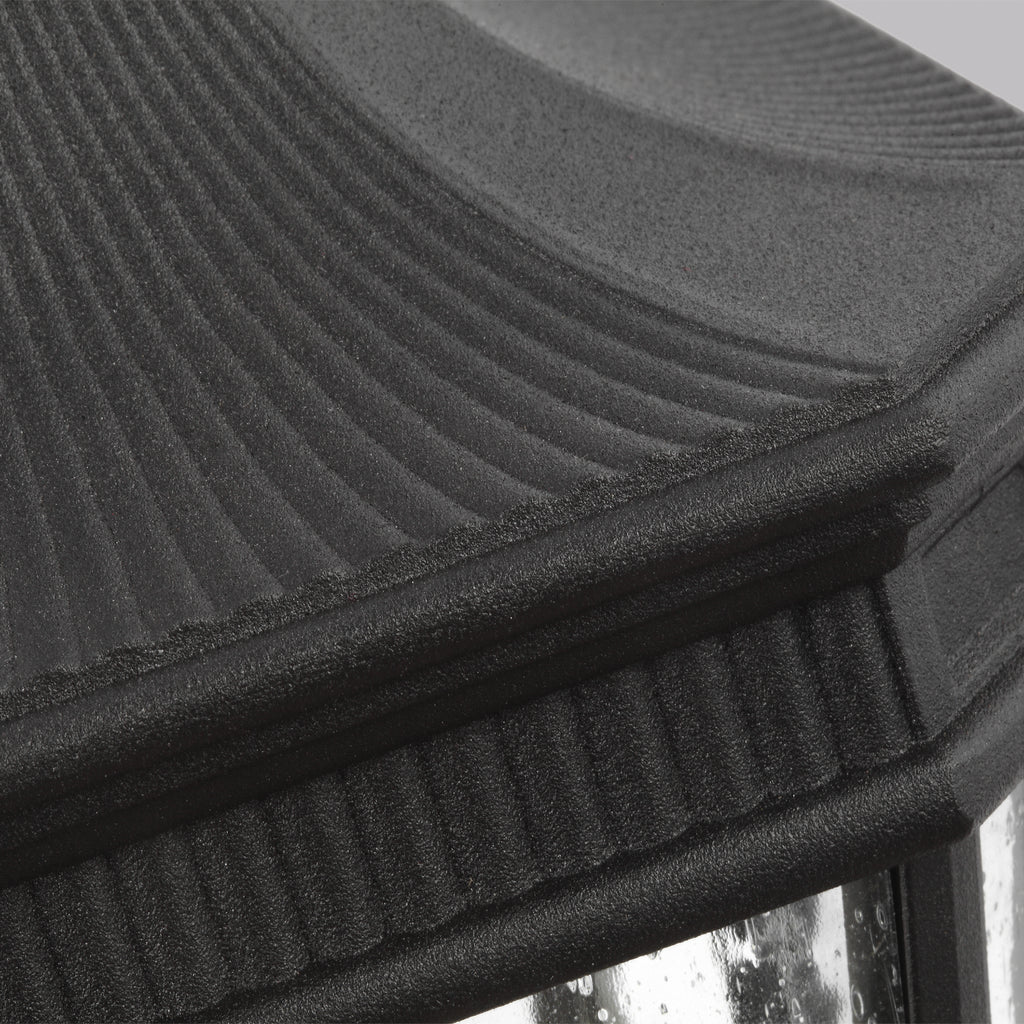 The traditional, antique gas lantern-inspired design of Cotswold Lane features dentil molding at the top of each pane of beveled glass. Cotswold Lane's profile is timeless and elegant. Available with two finish and glass options: a Black or Grecian Bronze frame with Clear Beveled glass or Clear Seeded glass panels.