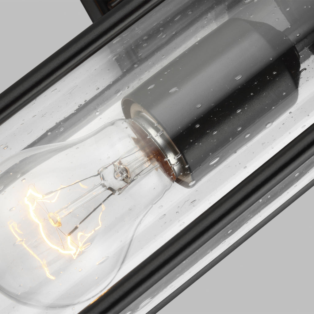 The Dakota one light outdoor wall fixture in espresso enhances the beauty of your property, makes your home safer and more secure, and increases the number of pleasurable hours you spend outdoors. The Dakota Collection is a contemporary take on a traditional lantern that is elegantly suspended from the backplate. The delicate lines on Dakota's streamlined frame rise softly into a curved crown. Dakota is available in an Espresso finish with a choice of either an Opal Etched glass shade or a Clear Seeded glass shade.