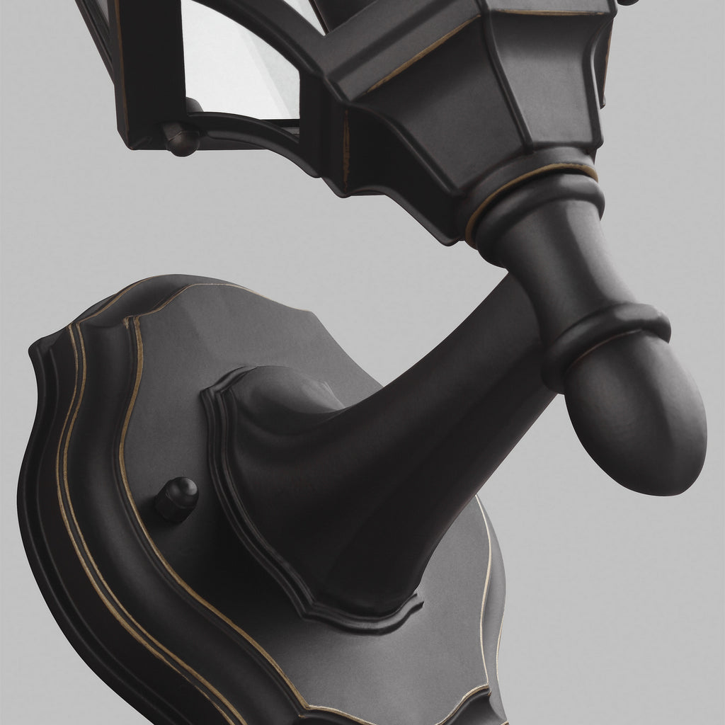 The Sevier one light outdoor wall fixture in antique bronze creates a warm and inviting welcome presentation for your home's exterior. The Sevier outdoor collection by brings timeless design to new heights with its traditional design details found in classic outdoor fixtures as well as an open bottom for easy maintenance. Made of durable cast aluminum, a multi-level crown, top finial and stepped-edge back plate complete the traditional look. Offered in Antique Bronze or Black finish, both with Clear glass, the collection includes a one-light outdoor pendant, one-light post lantern, a large one-light up light outdoor wall lantern, a small one-light up light outdoor wall lantern, a small one-light downlight outdoor wall lantern, and a large one-light downlight outdoor wall lantern.