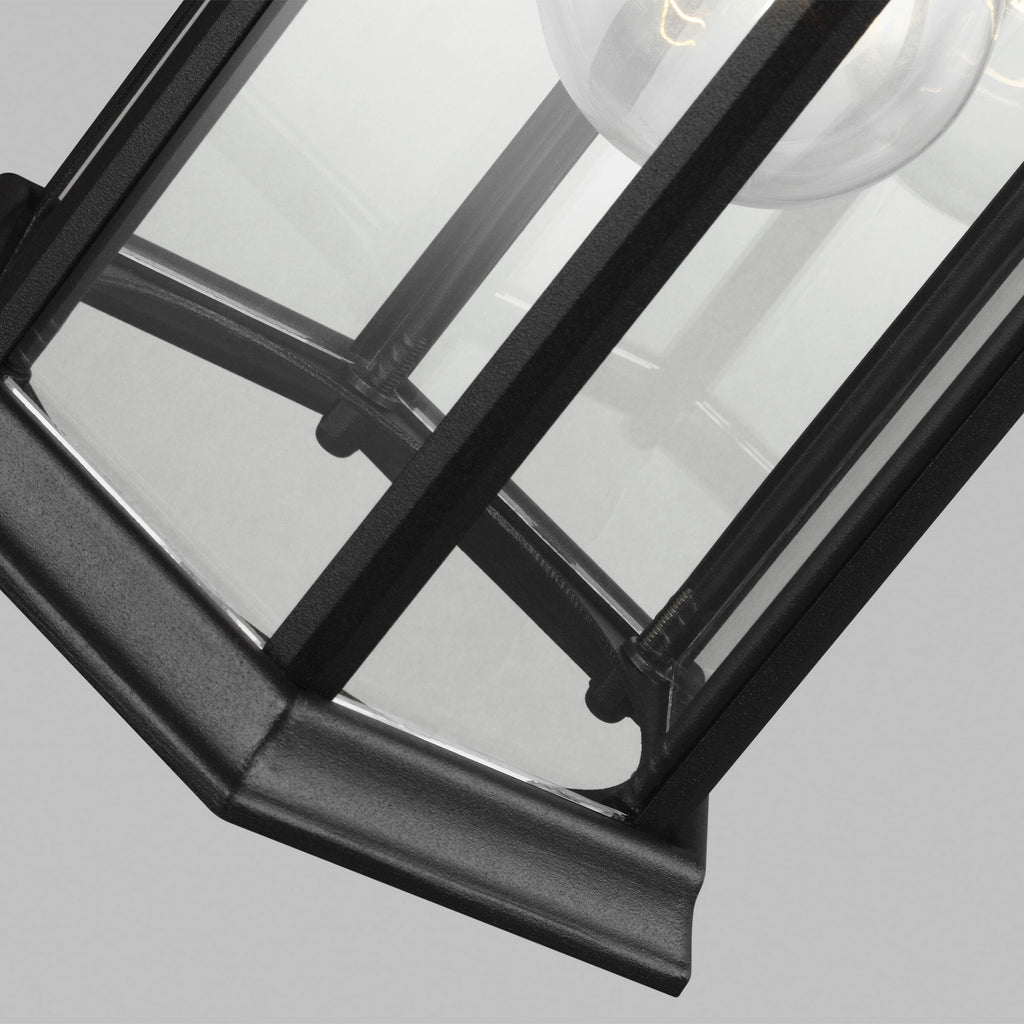 The Sevier one light outdoor wall fixture in black enhances the beauty of your property, makes your home safer and more secure, and increases the number of pleasurable hours you spend outdoors. The Sevier outdoor collection by brings timeless design to new heights with its traditional design details found in classic outdoor fixtures as well as an open bottom for easy maintenance. Made of durable cast aluminum, a multi-level crown, top finial and stepped-edge back plate complete the traditional look. Offered in Antique Bronze or Black finish, both with Clear glass, the collection includes a one-light outdoor pendant, one-light post lantern, a large one-light up light outdoor wall lantern, a small one-light up light outdoor wall lantern, a small one-light downlight outdoor wall lantern, and a large one-light downlight outdoor wall lantern.