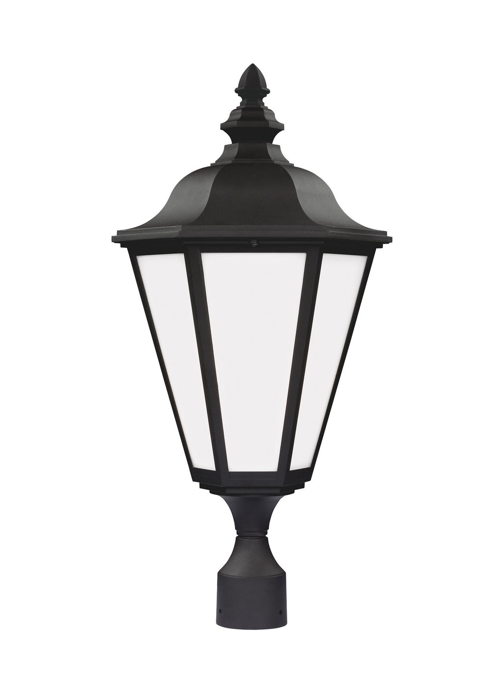 The Brentwood one light outdoor post top in black enhances the beauty of your property, makes your home safer and more secure, and increases the number of pleasurable hours you spend outdoors. The traditional design accents and pleasant proportions of the Brentwood outdoor lighting collection from make it a versatile selection for any home. Offered in either a Black Powder coat or White Powder coat finish, and either Clear or White Glass. The assortment offered in both finishes includes a small one-light outdoor wall lantern, a medium one-up light outdoor wall lantern, a medium one-downlight outdoor wall lantern, a large one-light wall lantern, a one-light outdoor pendant and a one-light outdoor post lantern. In the Black Powder coat finish only, a two-light outdoor ceiling flush mount is also available. Most of these fixtures easily convert to LED by purchasing LED replacement lamps sold separately.