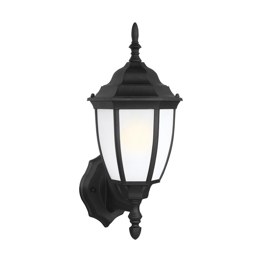 The Bakersville one light outdoor wall fixture in black is an ENERGY STAR qualified lighting fixture that uses LED bulbs to save you both time and money. Bakersville outdoor lighting fixtures from are made to complement a wide range of architectural styles. Each light is crafted from high quality, durable steel and aluminum to provide you sensible style that lasts. The large, 1-light outdoor wall lantern is offered in Heirloom Bronze with Satin Etched glass or Clear Beveled glass. The remaining assortment of wall lanterns in three sizes and a Flush mount ceiling fixture are offered in a Black Powder coat finish with Satin Etched glass (with ENERGY-STAR-qualified LED lamping options) or Clear Beveled glass (which can easily convert to LED by purchasing LED replacement lamps sold separately).
