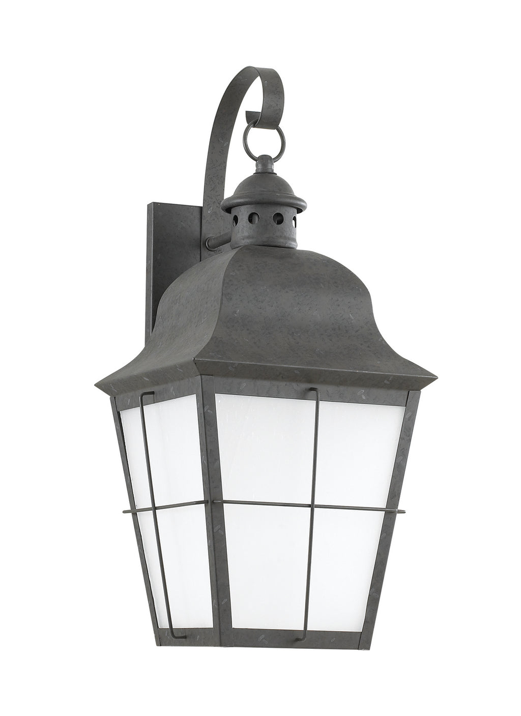 The Chatham one light outdoor wall fixture in oxidized bronze creates a warm and inviting welcome presentation for your home's exterior. Chatham outdoor by offers a timeless, traditional design with a classic window pane detailing over Frosted Seeded glass or Clear Seeded glass, and crowed with a cupola atop the dramatic mansard roofline.