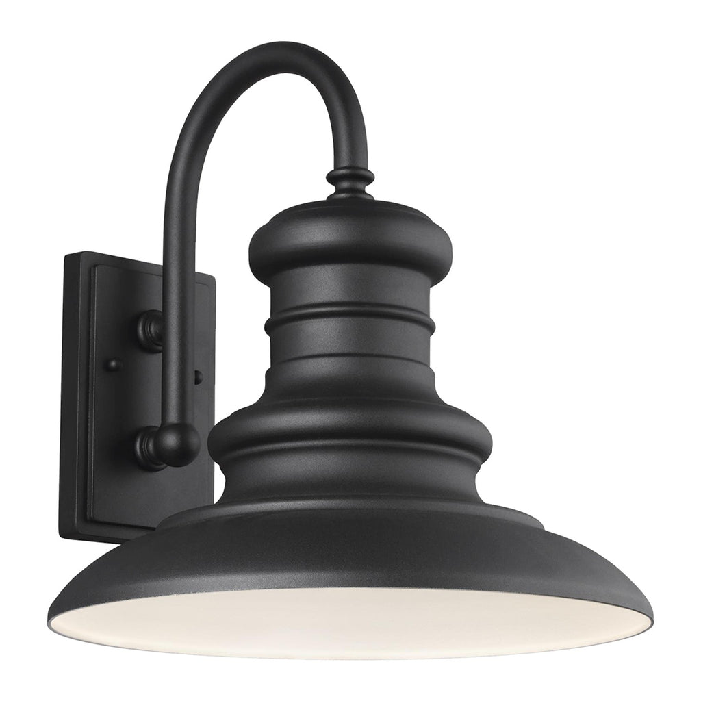 The Redding Station one light outdoor wall fixture in textured black creates a warm and inviting welcome presentation for your home's exterior. All Aboard! Reminiscent of old railroad lighting, the Redding Station Collection warmly illuminates its surroundings with a vintage railroad vibe. The all-aluminum shades feature textured details. Redding Station is available in three finish options: Tarnished Silver, Restoration Bronze and Textured Black.