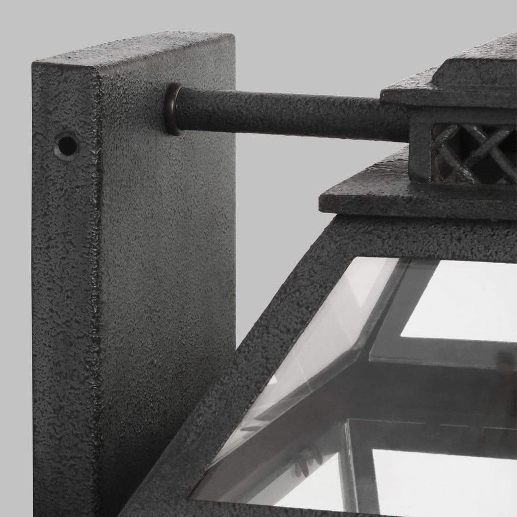 Falmouth by Chapman and Myers outdoor lighting design mimics a vintage gas lantern, with a classic, tapered box shape. The clean lines of the elegant frame have an uncluttered silhouette that showcases the beautiful panels of clear glass.
