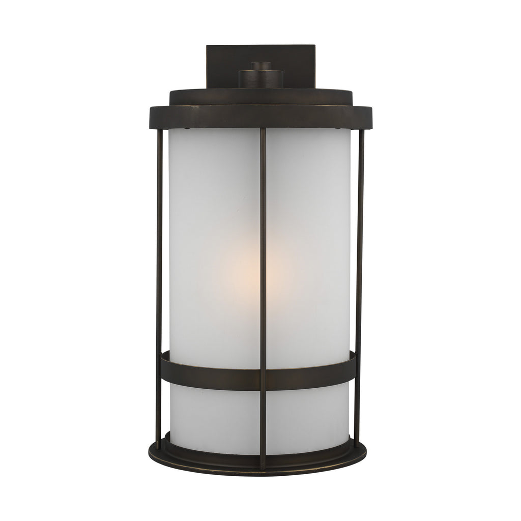 With a nod to retro-industrial chic, the Wilburn outdoor fixtures wraps a white frosted glass shade in a fun metal cage to create a casual and easygoing look. Offered in Antique Bronze and Black finishes with Etched White glass, the assortment includes a one-light outdoor pendant, small medium, large, and extra-large one-light outdoor wall lanterns, a one-light out door post lantern and a one-light outdoor ceiling flush mount. Both incandescent lamping and ENERGY STAR-qualified LED lamping are available for most of the fixtures, and some can easily convert to LED by purchasing LED replacement lamps sold separately.