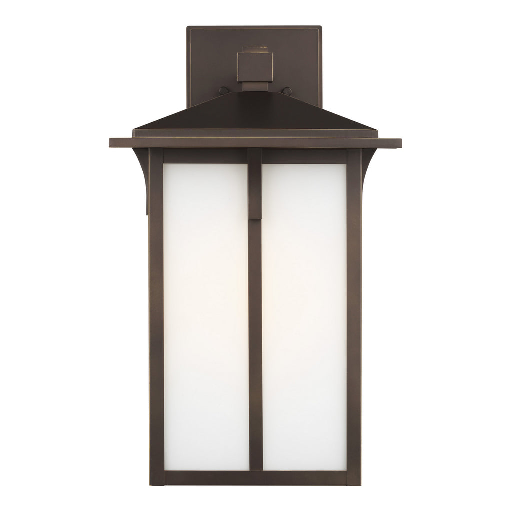 Tomek outdoor offers architectural craftsman's details with a minimalist approach. The frosted glass panels add a chic aspect to the visual depth. Its black or bronze frame is rust-proof as well as fade-resistant, ready to take on whatever the weather, rain or shine, on your porch or patio! The assortment includes a one-light outdoor pendant, small medium, large, and extra-large one-light outdoor wall lanterns, a one-light out door post lantern and a one-light outdoor ceiling flush mount. Both incandescent lamping and ENERGY STAR-qualified LED lamping are available for most of the fixtures, and some can easily convert to LED by purchasing LED replacement lamps sold separately.