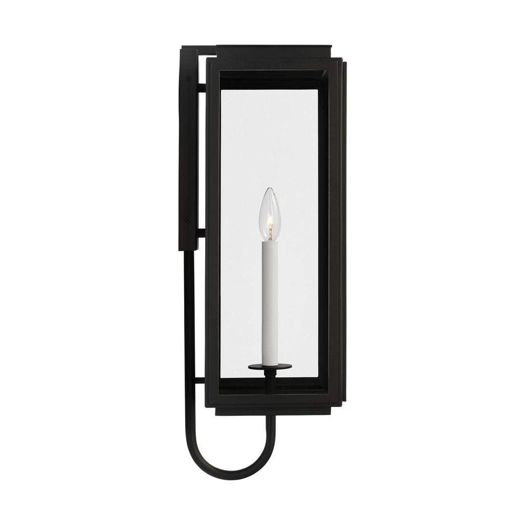 The Edgar one-light outdoor wall fixture in Textured Black by Lauren Ralph Lauren is a Modern interpretation of a gas lantern. Edgar will withstand harsh outdoor conditions for years to come. StoneStrong material is rust-proof and built to last in any outside environment, including coastal, dry, and harsh winter climates. StoneStrong is also backed by a robust warranty. Add a vintage classical look with the advantages of modern technology as an attractive and practical addition to any exterior. Crafted of steel with clear glass panes, this lantern-style single-light sconce adds a classic note to the porch or patio. Available in a handsome Textured Black finish. All fixtures are available as ENERGY STAR-qualified and California Title 24 compliant.