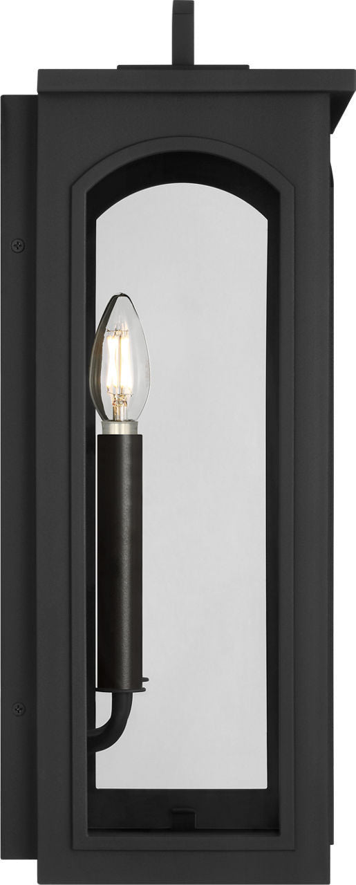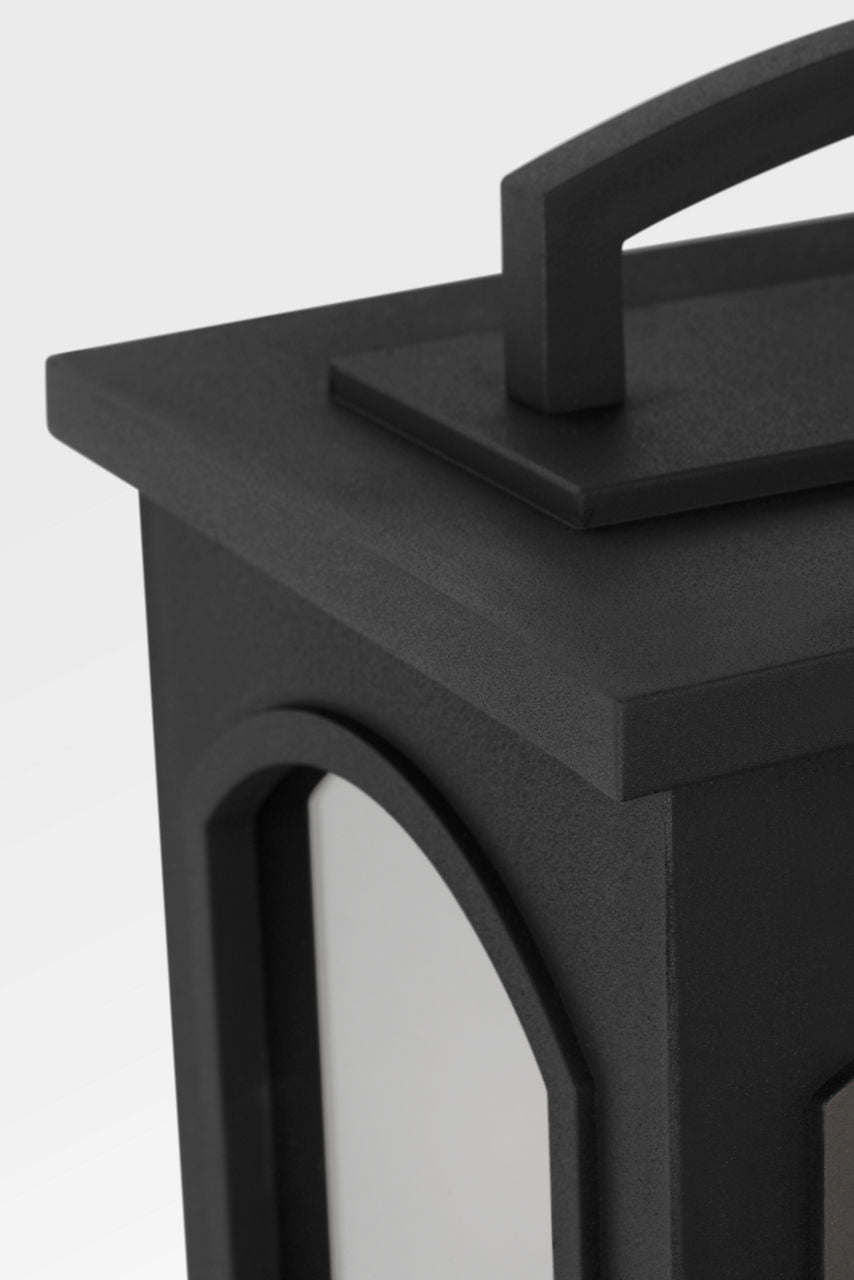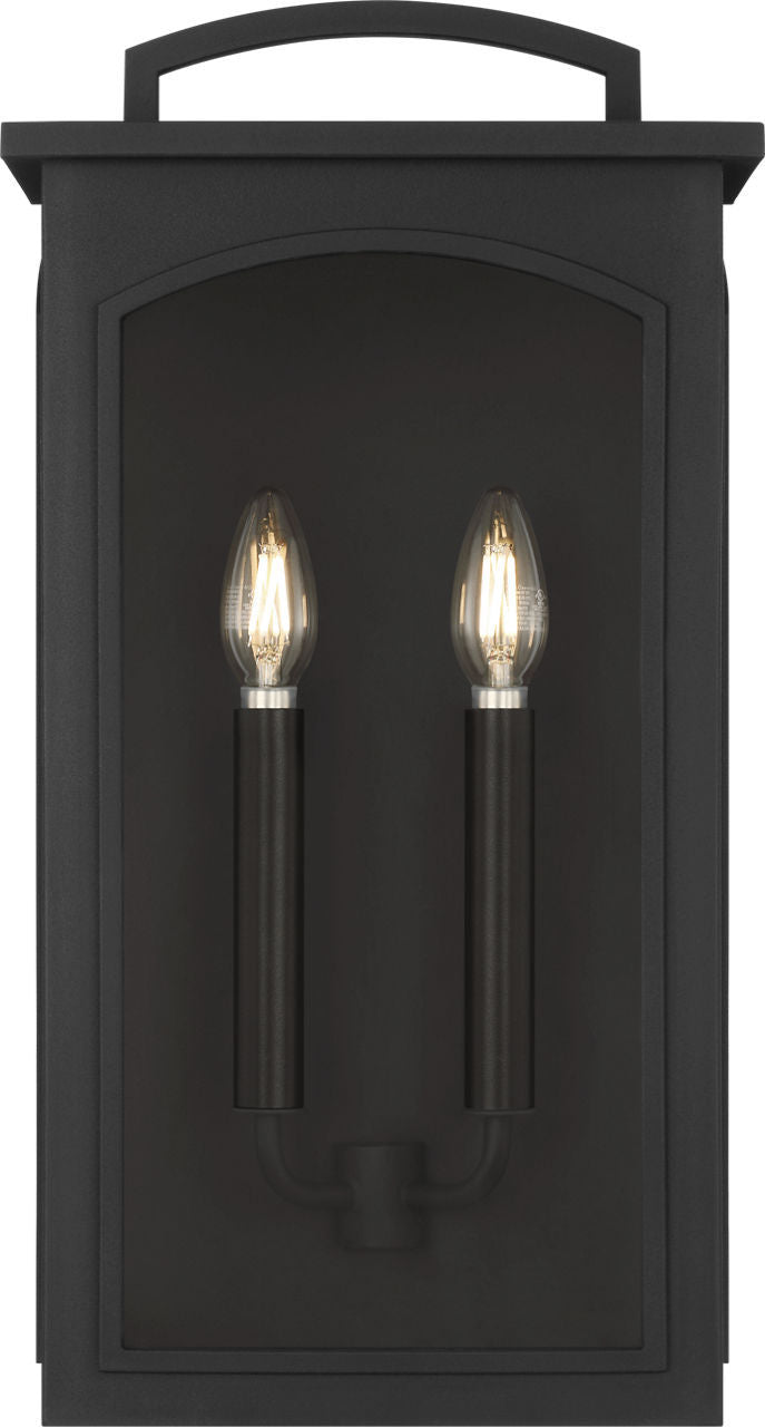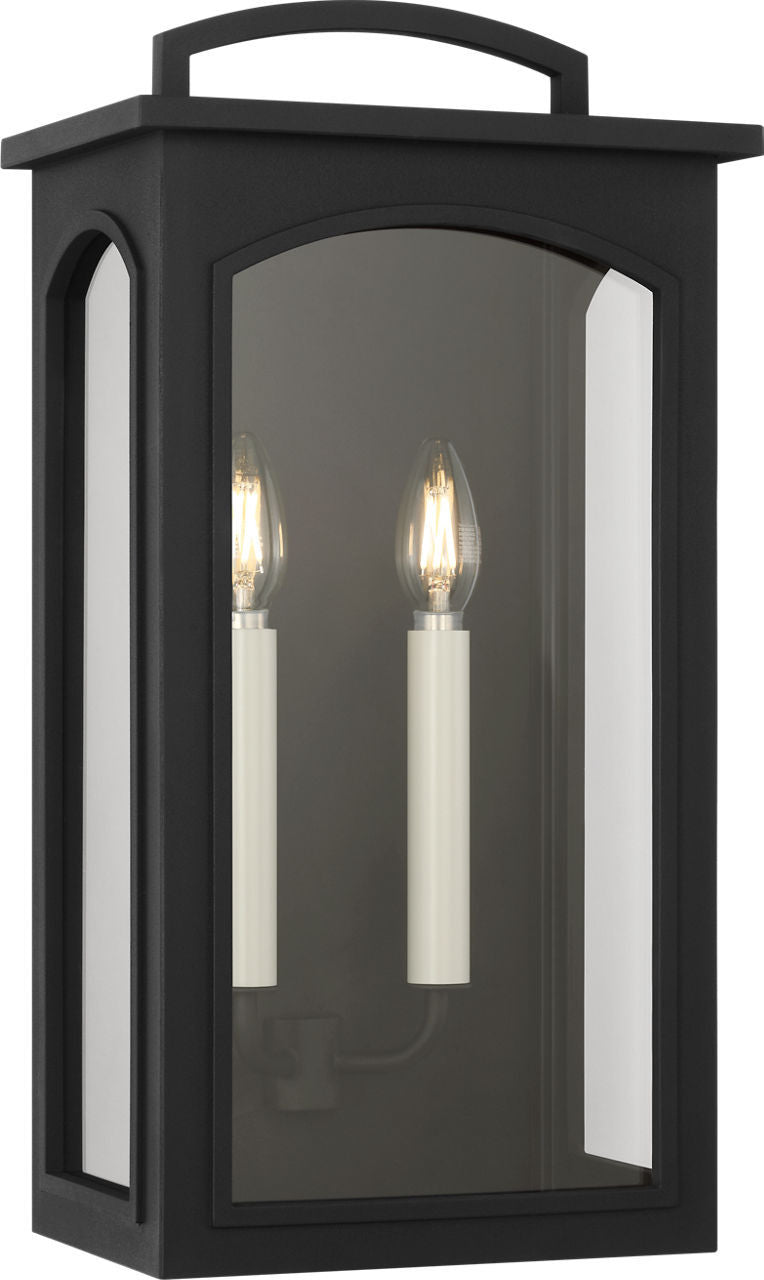 The Modesto 19" Wall Lantern by Chapman & Myers brings architectural elegance to outdoor spaces with its barrel-vault-inspired design. The rectangular frame features arched openings and a coordinating arched handle detail, echoing the graceful curves of classic ceiling architecture. Crafted from StoneStrong—a material engineered to endure wet and coastal environments—the fixture is finished with cream-colored candle covers that add warmth and timeless appeal. At 19", this lantern is ideal for entryways, patios, and garage exteriors, where its sculptural form and durable construction offer lasting sophistication.