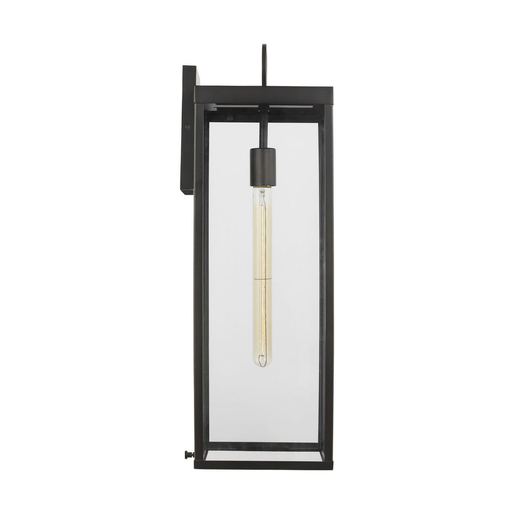 The Drew & Jonathan Howell Outdoor series infuses classic design with clean, contemporary lines. The frame is crafted from weather-resistant aluminum in an Antique Bronze or Textured Black finish for an industrial appeal and a ring detail to complement the design. Inside, Howell features an open bulb base that aims the light out over your space from a single light bulb (sold separately). Clear and opal etched glass ship with this fixture for a more customized look.