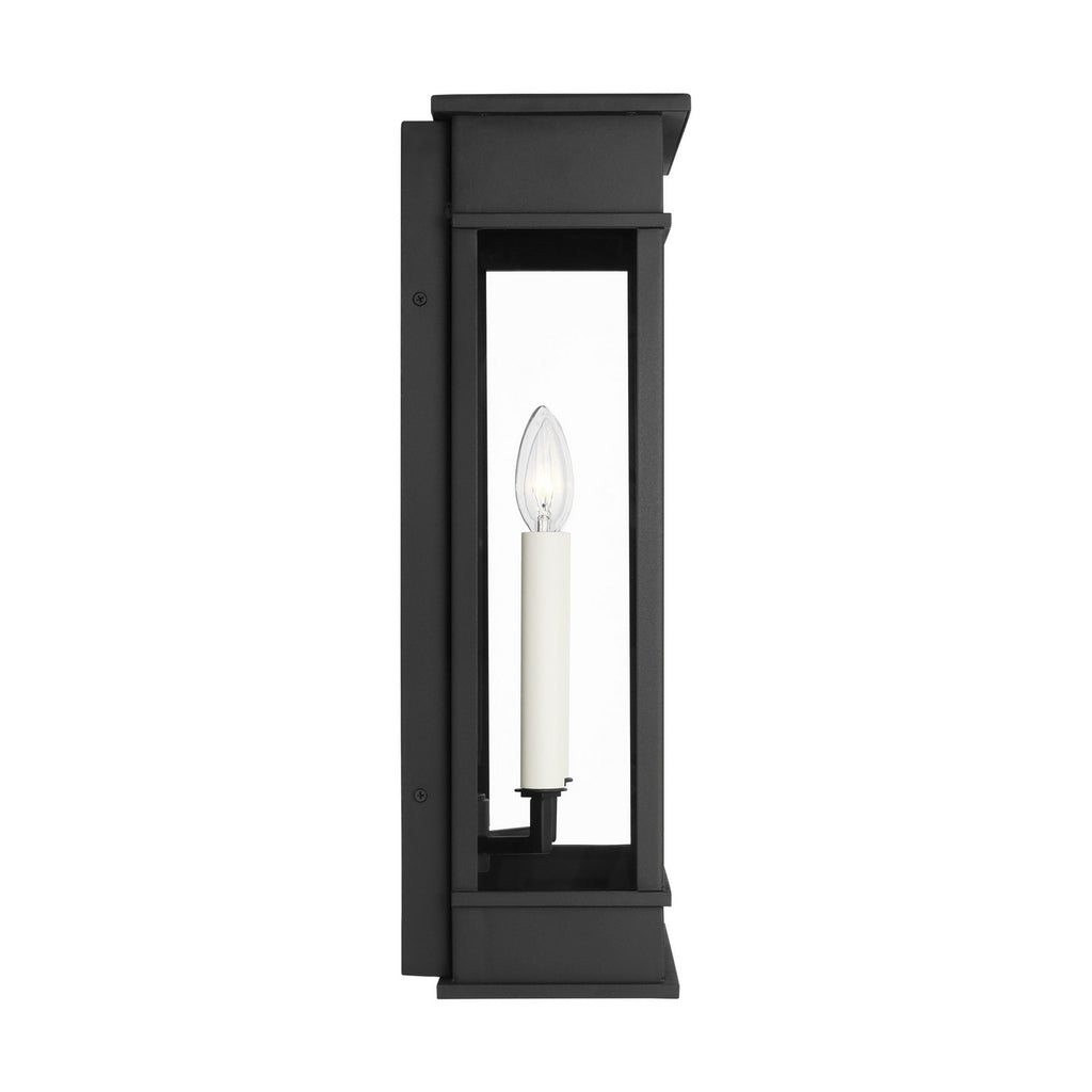 The Cupertino outdoor series by Chapman & Myers was created to embody a more transitional classic rectangular lantern profile. Rather than feature filament tube bulbs, each lantern has a more traditional candelabra with cream candle tubes to complete the design. The top and bottom of each lantern have an almost architectural stepped detailing.