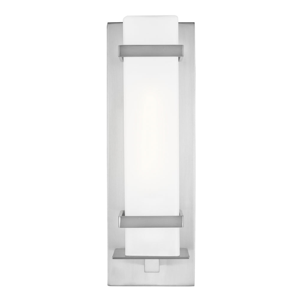 The Alban one light outdoor wall fixture in satin aluminum enhances the beauty of your property, makes your home safer and more secure, and increases the number of pleasurable hours you spend outdoors. Alban has modern charm with a minimalist twist. Etched Opal Glass shades bring simplicity to any outdoor living space whether it be a covered porch, deck, patio or walkway. This Modern outdoor wall fixture features a sturdy cast aluminum construction, two finish options and Opal Etched cylindrical or square glass shades.