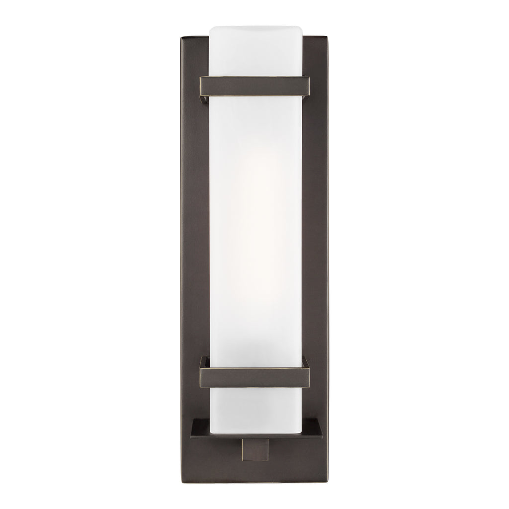 The Alban one light outdoor wall fixture in antique bronze is an ENERGY STAR qualified lighting fixture that uses LED bulbs to save you both time and money. Alban has modern charm with a minimalist twist. Etched Opal Glass shades bring simplicity to any outdoor living space whether it be a covered porch, deck, patio or walkway. This Modern outdoor wall fixture features a sturdy cast aluminum construction, two finish options and Opal Etched cylindrical or square glass shades.