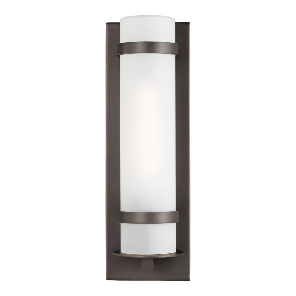 The Alban one light outdoor wall fixture in antique bronze creates a warm and inviting welcome presentation for your home's exterior. Alban has modern charm with a minimalist twist. Etched Opal Glass shades bring simplicity to any outdoor living space whether it be a covered porch, deck, patio or walkway. This Modern outdoor wall fixture features a sturdy cast aluminum construction, two finish options and Opal Etched cylindrical or square glass shades.