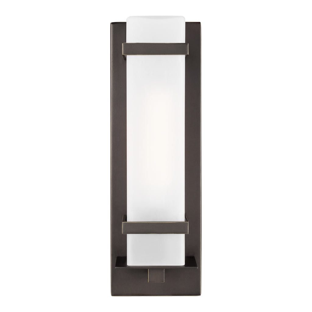 The Alban one light outdoor wall fixture in antique bronze creates a warm and inviting welcome presentation for your home's exterior. Alban has modern charm with a minimalist twist. Etched Opal Glass shades bring simplicity to any outdoor living space whether it be a covered porch, deck, patio or walkway. This Modern outdoor wall fixture features a sturdy cast aluminum construction, two finish options and Opal Etched cylindrical or square glass shades.