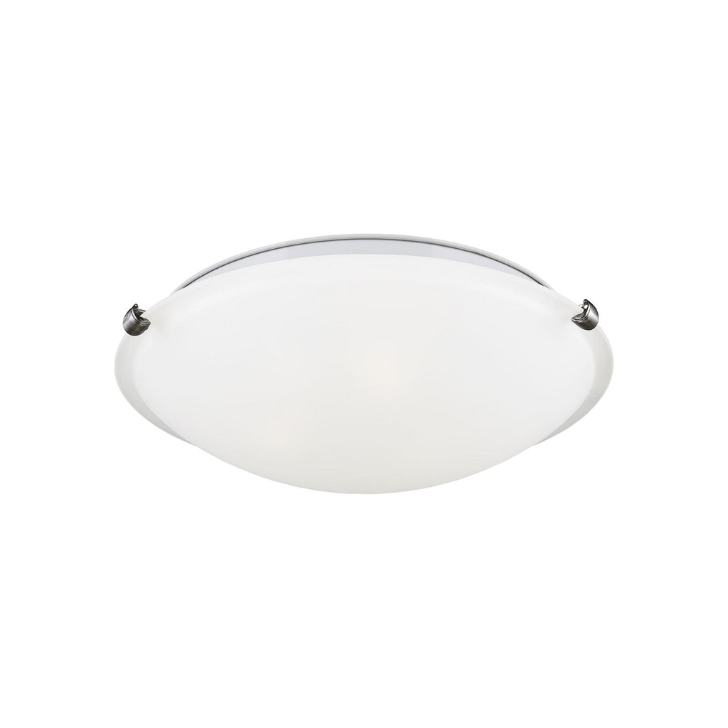 The Clip Ceiling Flush Mount one light flush mount fixture in brushed nickel provides abundant light to your home, while adding style and interest. The clip ceiling flush mount fixtures by provide a clean, contemporary look popular in commercial and residential settings. Offered in two-light and three-light options, the Satin Etched glass is held securely in place with Three Brushed Nickel clips slide the spring-tension clip out for easy glass cleaning and bulb changing. Available in incandescent lamping, ENERGY STAR-qualified LED lamping, and integrated LED.