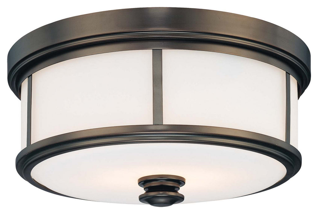 2 Light Flush Mount in Harbour Point Bronze Finish with Etched Opal Glass