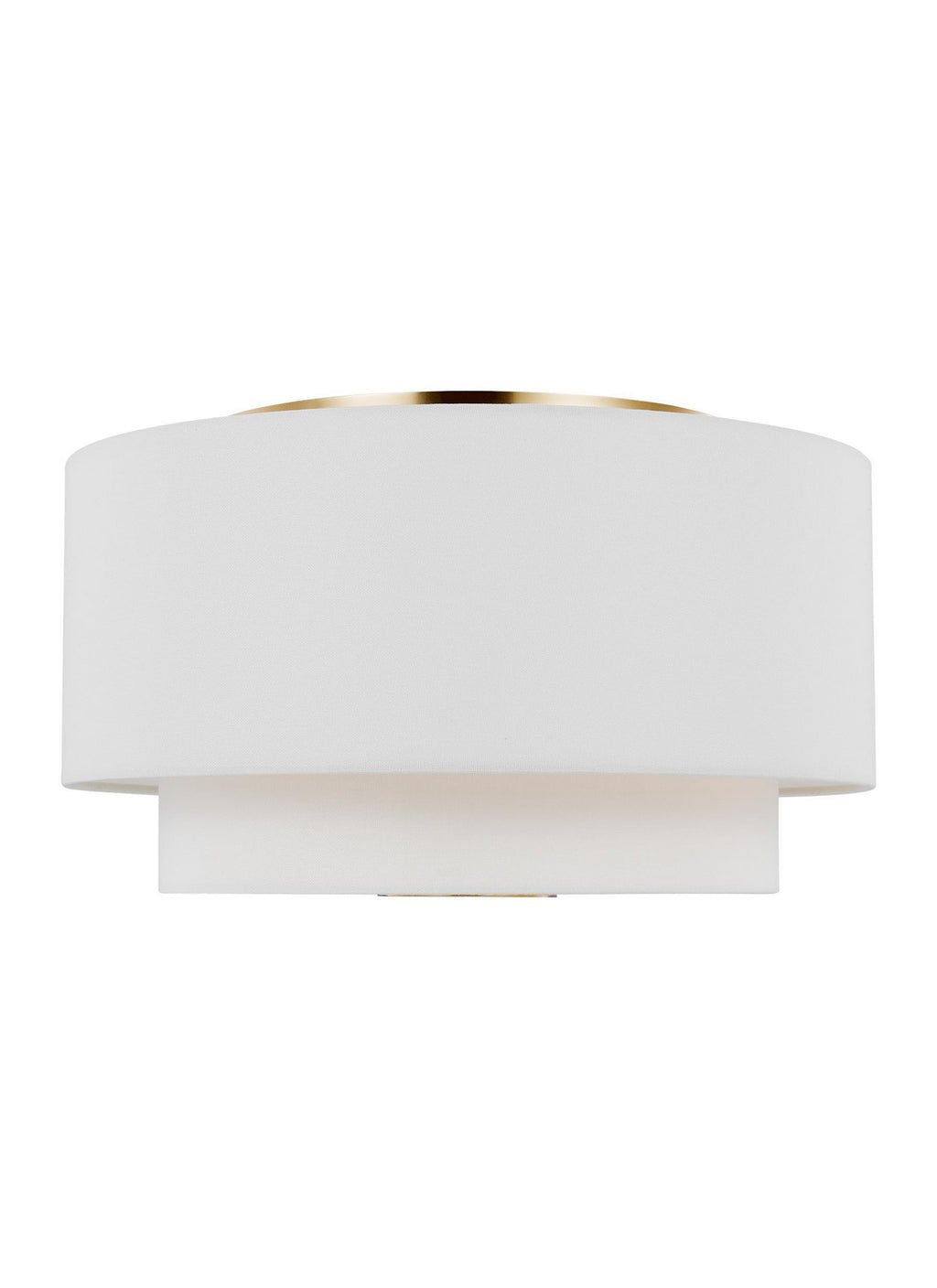 Inspired by kate spade whimsical geometry and playful lines, Sawyer has a striking silhouette with graphically taped shades. The Sawyer flush mount fixture by kate spade New York is available in burnished brass and polished nickel finishes.