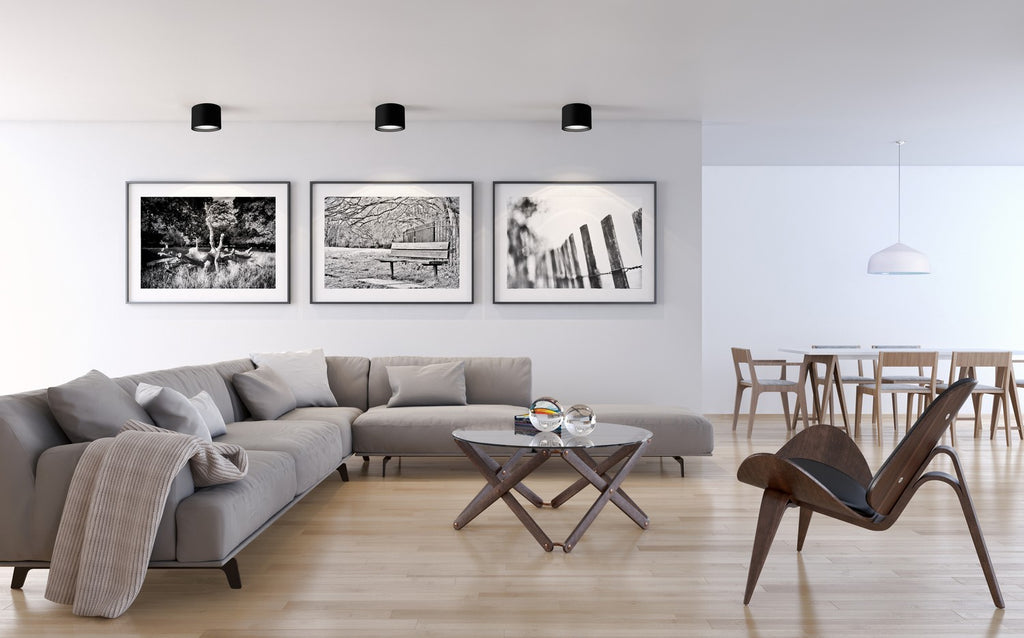 LED flush mount made from heavy gauge cast aluminum painted white or black, round cylinder shaped. Shines through a high-precision optical lens down into the room.