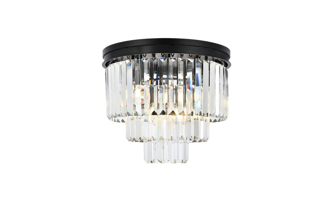 Timeless splendor and modern refinement are brought together in flush-mount Sydney fixtures. Dazzling in dining rooms, staircases, or hallways, the Sydney collection flaunts stunning tiers of royal-cut crystals in clear, golden teak, or Silver shade. A circular Matte Black or polished-nickel finished steel frame adds understated charm to this stunning flush-mount lamp.