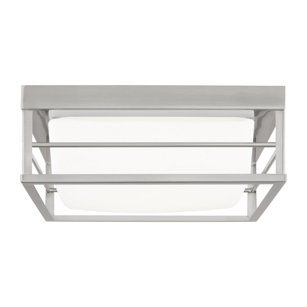 The Dearborn one light flush mount fixture in brushed nickel silver is a universal flush mount, with contemporary angles and open cage frame. Minimalism and elegant design, the simple geometric shape with the metal frame and LED lamping, suitable for kinds of decoration: modern, mid-century, rustic or industrial.