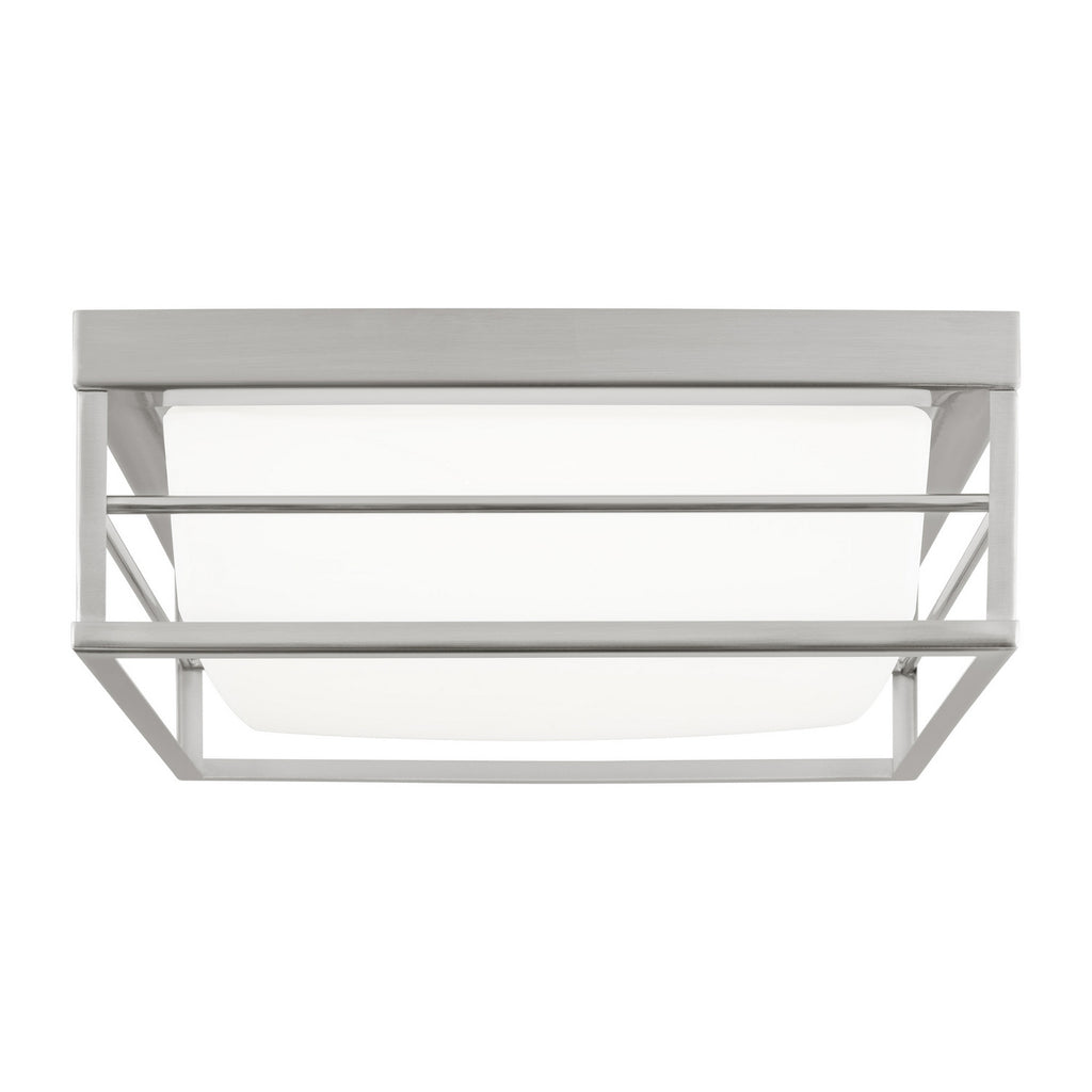 The Dearborn one light flush mount fixture in brushed nickel silver is a universal flush mount, with contemporary angles and open cage frame. Minimalism and elegant design, the simple geometric shape with the metal frame and LED lamping, suitable for kinds of decoration: modern, mid-century, rustic or industrial.