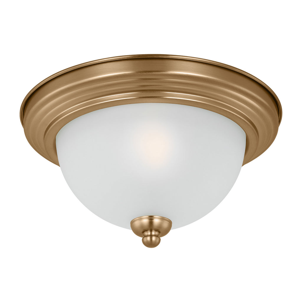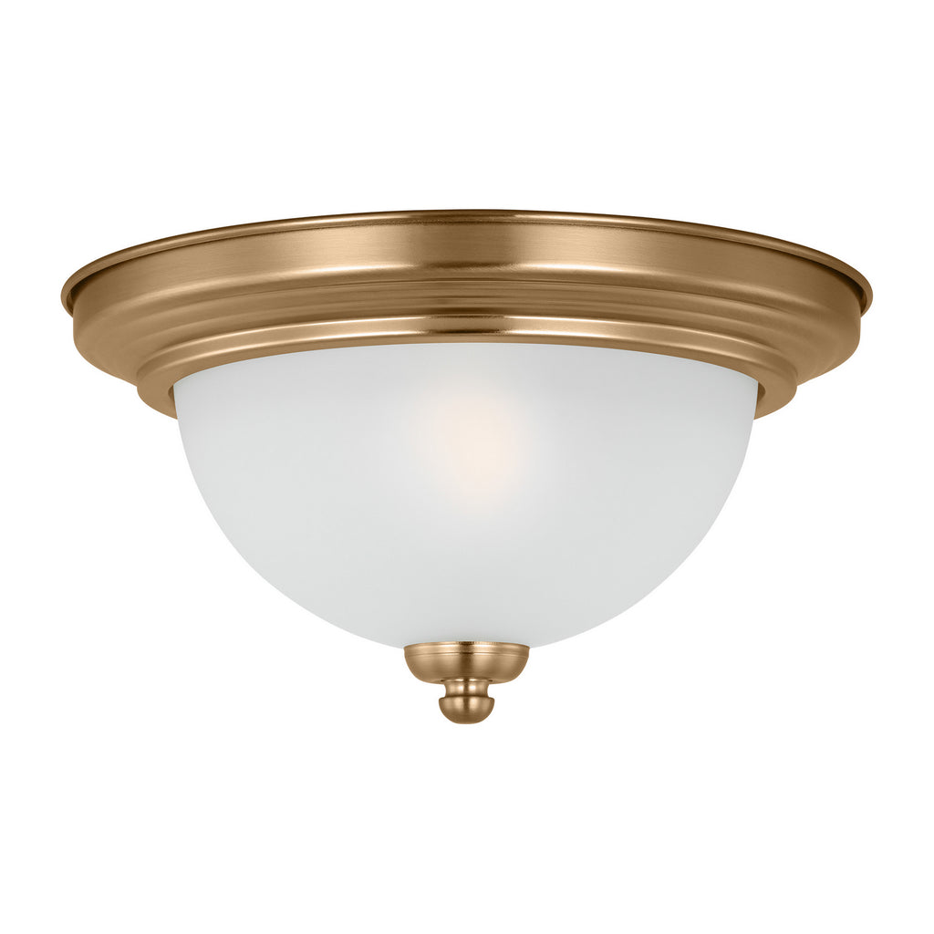 The Geary one light flush mount fixture in Satin Brass supplies ample lighting for your daily needs, while adding a layer of today's style to your home's décor. Adaptability takes center stage with the Geary Collection. This series of traditional up-light pendants, semi-flush and flush-mount fixtures feature decoratively bowed arms and constructed of rectangular steel tubing. Geary flush mount is a true cross-collection piece, offered in six beautiful finishes Chrome, Midnight Black, Brushed Nickel, Bronze, White and Satin Brass. The Geary has a universal appeal matching 24 different interior collections. Offering subtle style with practical design, Geary is at home in almost any room. The fixtures have a fluid movement with a traditional look to complement a wide range of decor.
