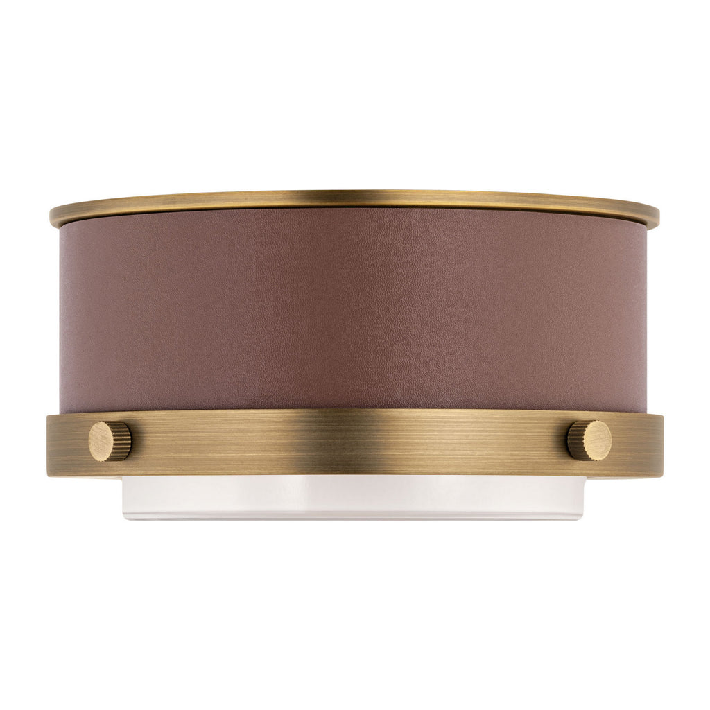 The Marlowe flush mount by Lauren Ralph Lauren embodies timeless sophistication and impeccable craftsmanship. A sleek cylindrical form is elevated by the natural texture and inviting warmth of hand-stitched leather, creating a refined yet approachable design. Accented with sturdy metal trim, the fixture exudes a subtle shine that beautifully complements its rugged yet elegant aesthetic. The glass bottom ensures ample illumination, while functional screws add a distinctively industrial-inspired decorative detail.