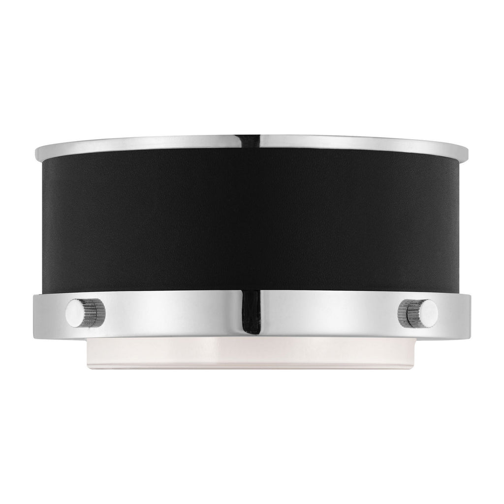The Marlowe flush mount by Lauren Ralph Lauren embodies timeless sophistication and impeccable craftsmanship. A sleek cylindrical form is elevated by the natural texture and inviting warmth of hand-stitched leather, creating a refined yet approachable design. Accented with sturdy metal trim, the fixture exudes a subtle shine that beautifully complements its rugged yet elegant aesthetic. The glass bottom ensures ample illumination, while functional screws add a distinctively industrial-inspired decorative detail.