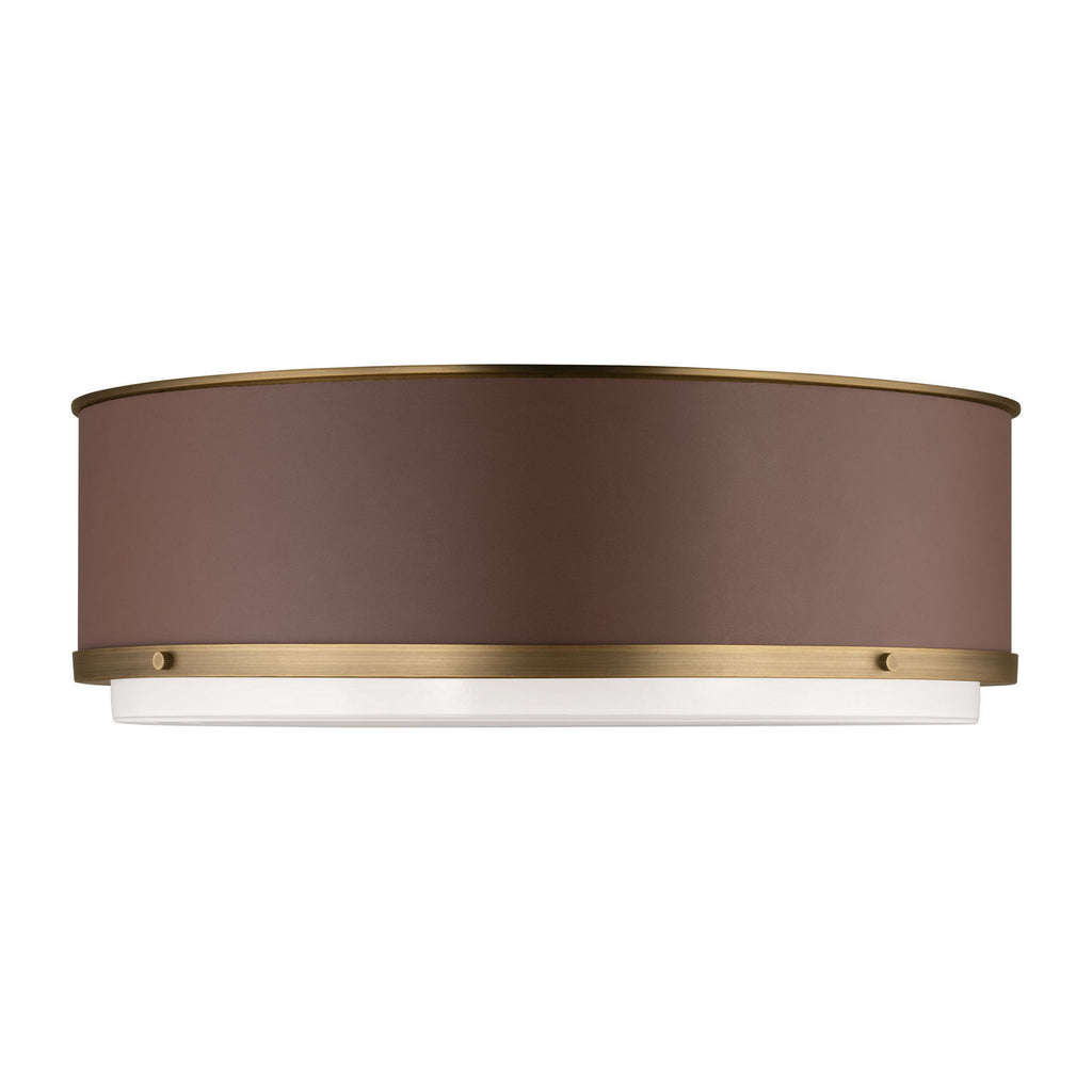 The Marlowe flush mount by Lauren Ralph Lauren embodies timeless sophistication and impeccable craftsmanship. A sleek cylindrical form is elevated by the natural texture and inviting warmth of hand-stitched leather, creating a refined yet approachable design. Accented with sturdy metal trim, the fixture exudes a subtle shine that beautifully complements its rugged yet elegant aesthetic. The glass bottom ensures ample illumination, while functional screws add a distinctively industrial-inspired decorative detail.