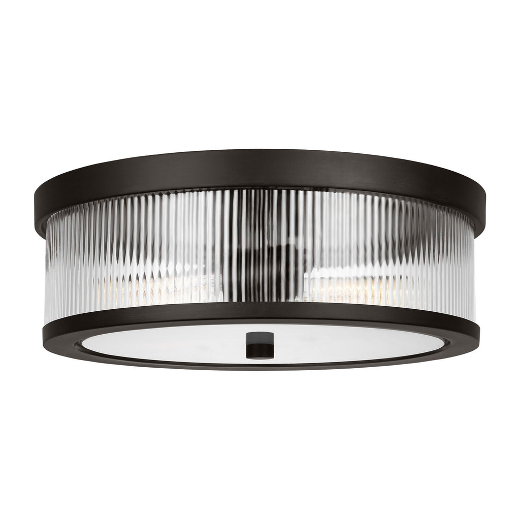 Designed by Chapman & Myers, the Geneva two light flush mount fixture in Aged Iron is the perfect way to achieve your desired fashion or functional needs in your home. A fluted shade forms an elegant, dynamic silhouette balanced by a strong frame of Aged Iron, Burnished Brass, or Polished Nickel.
