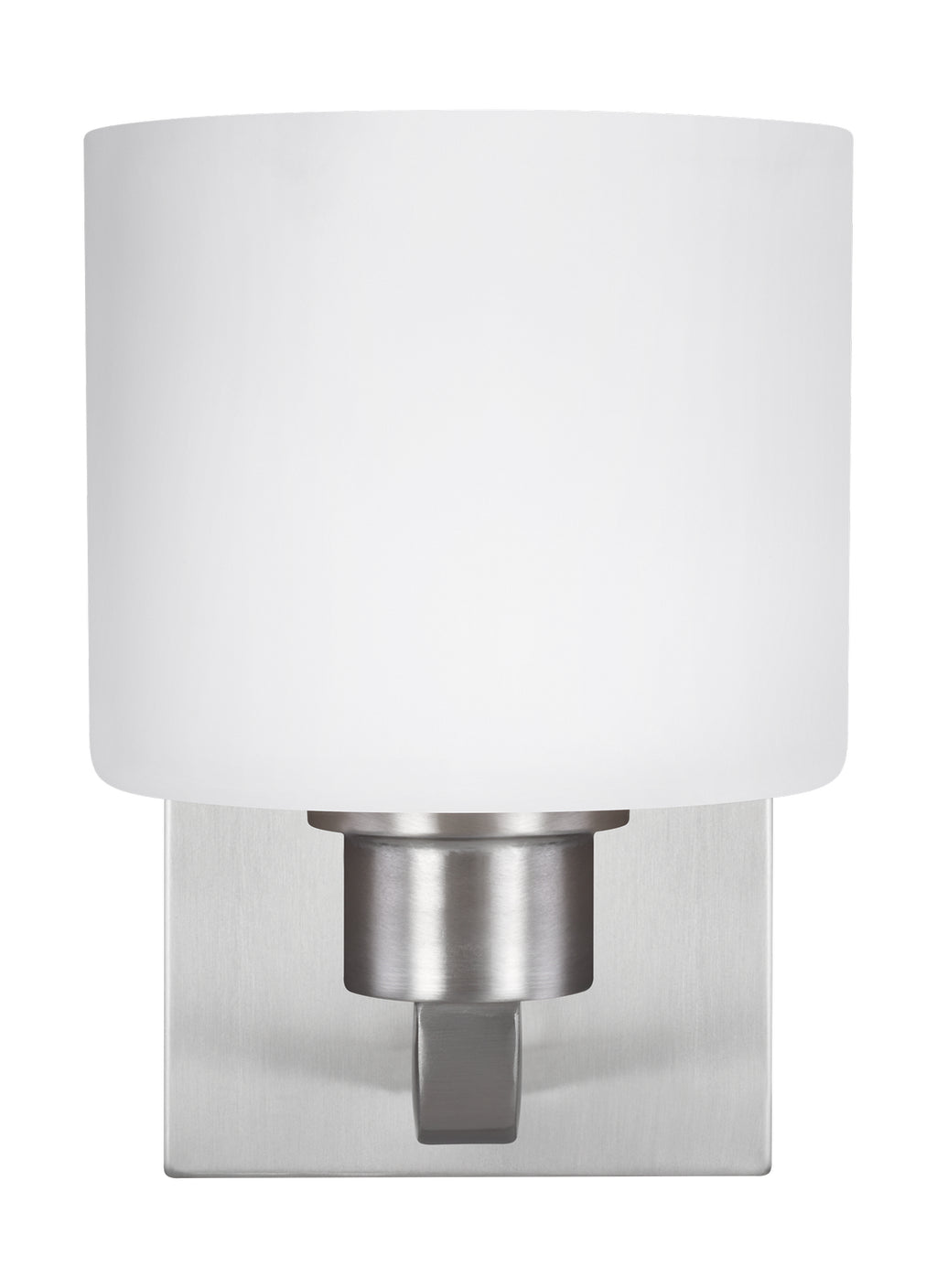 The Canfield one light wall sconce in brushed nickel provides abundant light for your bath vanity, while adding a layer of today's style to your interior design. Behind every seemingly simple design lies unerring attention to restraint and obsessive attention to the tiniest details. The Canfield collection by draws on the modernist traditions of "less is more". Essential functional elements dictate the aesthetics, and clean lines prevail. Layers of intricately finished hand-brushed steel progress vertically to the soft glow of light diffused through finely etched glass diffusors. Canfield offers a "whole home" lighting solution, offering lighting in every imaginable category from the auspicious 15 light 3-tier chandelier, to the concise mini-pendant and one-light sconces. The collection is available in hand brushed Burnt Sienna for a warm, tactile, almost Craftsman design style, or a brushed nickel to emphasize the more architectural elements of your interior.