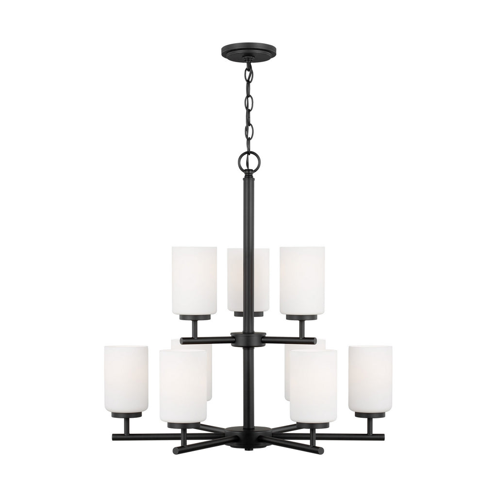 The Oslo nine light multi tier chandelier in midnight black provides abundant light to your home, while adding style and interest. The Oslo lighting collection by is a sleek design, with smooth and clean lines. The Opal Etched glass adds to this collection's contemporary and minimalist character. Offered in Chrome, Brushed Nickel, Burnt Sienna and textured Blacksmith finishes, the collection includes nine-, five-, and three-light chandeliers, pendants in four sizes, both flush and semi-flush ceiling fixtures, as well as one-, two-, three- and four-light wall/bath fixtures. Both incandescent lamping and ENERGY STAR-qualified LED lamping are available. All fixtures are California Title 24 compliant.