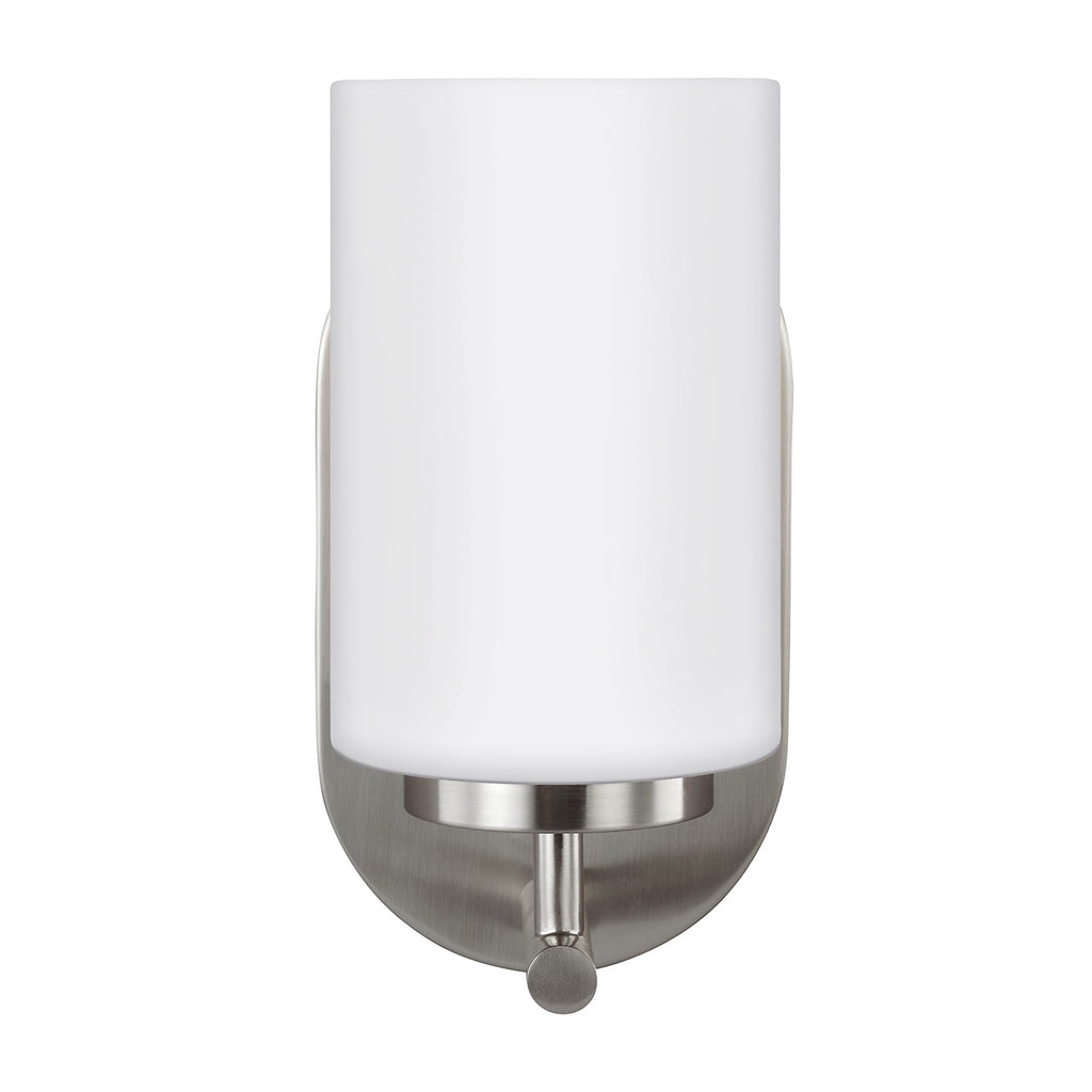The Oslo one light wall sconce in brushed nickel is an ENERGY STAR qualified lighting fixture that uses LED bulbs to save you both time and money. The Oslo lighting collection by is a sleek design, with smooth and clean lines. The Opal Etched glass adds to this collection's contemporary and minimalist character. Offered in Chrome, Brushed Nickel, Burnt Sienna and textured Blacksmith finishes, the collection includes nine-, five-, and three-light chandeliers, pendants in four sizes, both flush and semi-flush ceiling fixtures, as well as one-, two-, three- and four-light wall/bath fixtures. Both incandescent lamping and ENERGY STAR-qualified LED lamping are available. All fixtures are California Title 24 compliant.