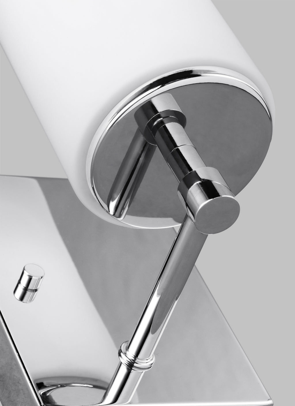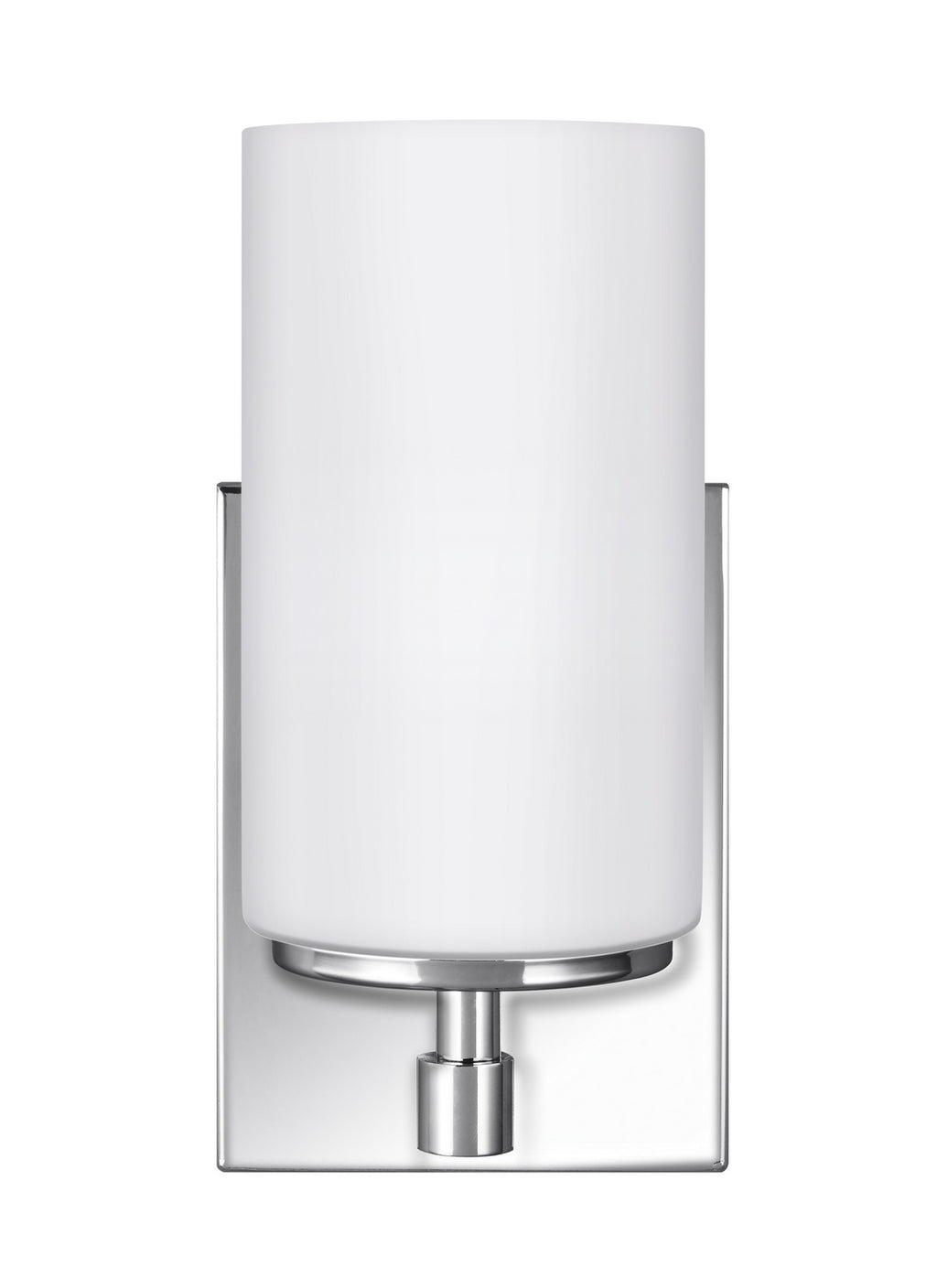 The Alturas one light wall sconce in chrome provides abundant light for your bath vanity, while adding a layer of today's style to your interior design. The silhouette of the modern Alturas lighting collection by features an interlocking, spherical steel frame, which harkens back to the Unisphere constructed for the 1964 New York World's Fair. The minimalist Alturas Collection draws the eye to the soft, warm glow of the light emitted from the cylindrical Satin Etched glass shades. The full assortment includes three-, five- and nine-light chandeliers, a one-light mini pendant, a three-light pendant, a two-light semi flush which is convertible into a pendant, and one-, two-, three- and four-light bath fixtures. All fixtures are offered in Brushed Oil Rubbed Bronze, Brushed Nickel and Satin Bronze finishes, the bath fixtures are also offered in Chrome finish. Incandescent and ENERGY STAR-qualified LED lamping are available, all fixtures are California Title 24 compliant.