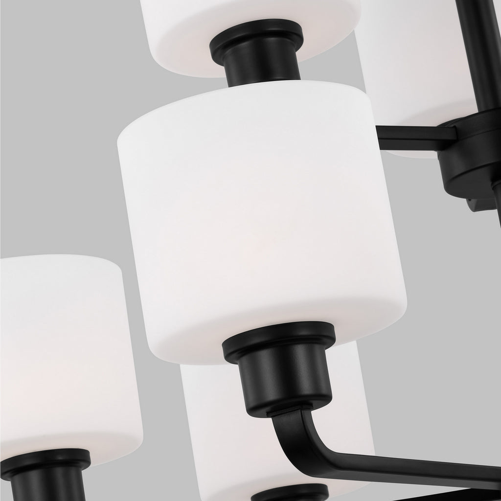 The Canfield nine light multi-tier chandelier in midnight black enhances the beauty of your home with ample light and style to match today's trends. Behind every seemingly simple design lies unerring attention to restraint and obsessive attention to the tiniest details. The Canfield collection by draws on the modernist traditions of "less is more". Essential functional elements dictate the aesthetics, and clean lines prevail. Layers of intricately finished hand-brushed steel progress vertically to the soft glow of light diffused through finely etched glass diffusors. Canfield offers a "whole home" lighting solution, offering lighting in every imaginable category from the auspicious 15 light 3-tier chandelier, to the concise mini-pendant and one-light sconces. The collection is available in hand brushed Burnt Sienna for a warm, tactile, almost Craftsman design style, or a brushed nickel to emphasize the more architectural elements of your interior.