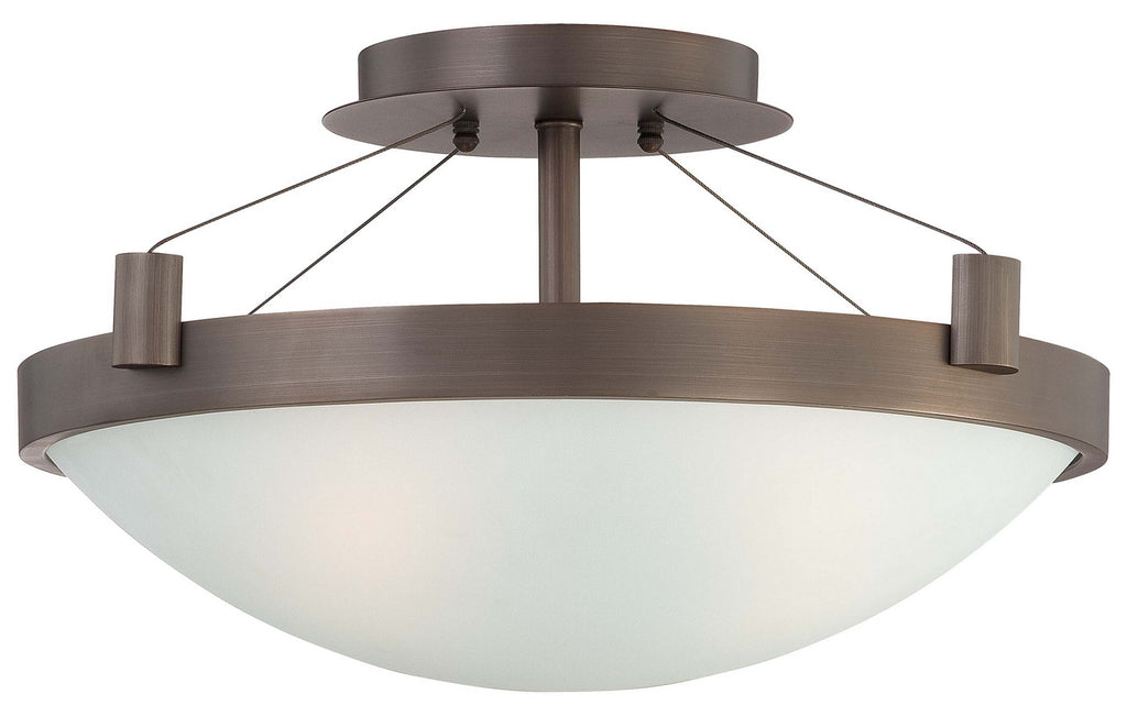 3 Light Semi Flush with Copper Bronze Patina Finish and White Frosted glass