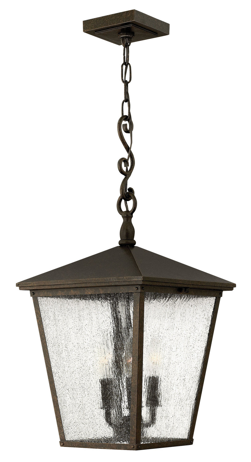 Trellis is a traditional European lantern design in an Aged Zinc finish with clear glass or Regency Bronze with clear seedy glass. The large scroll arm detail, cast loop finial and true rivet detail create a refined elegance.