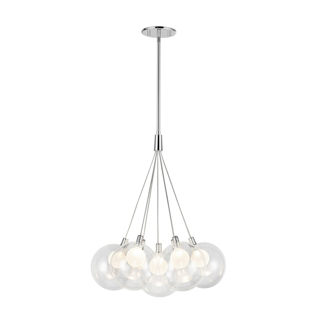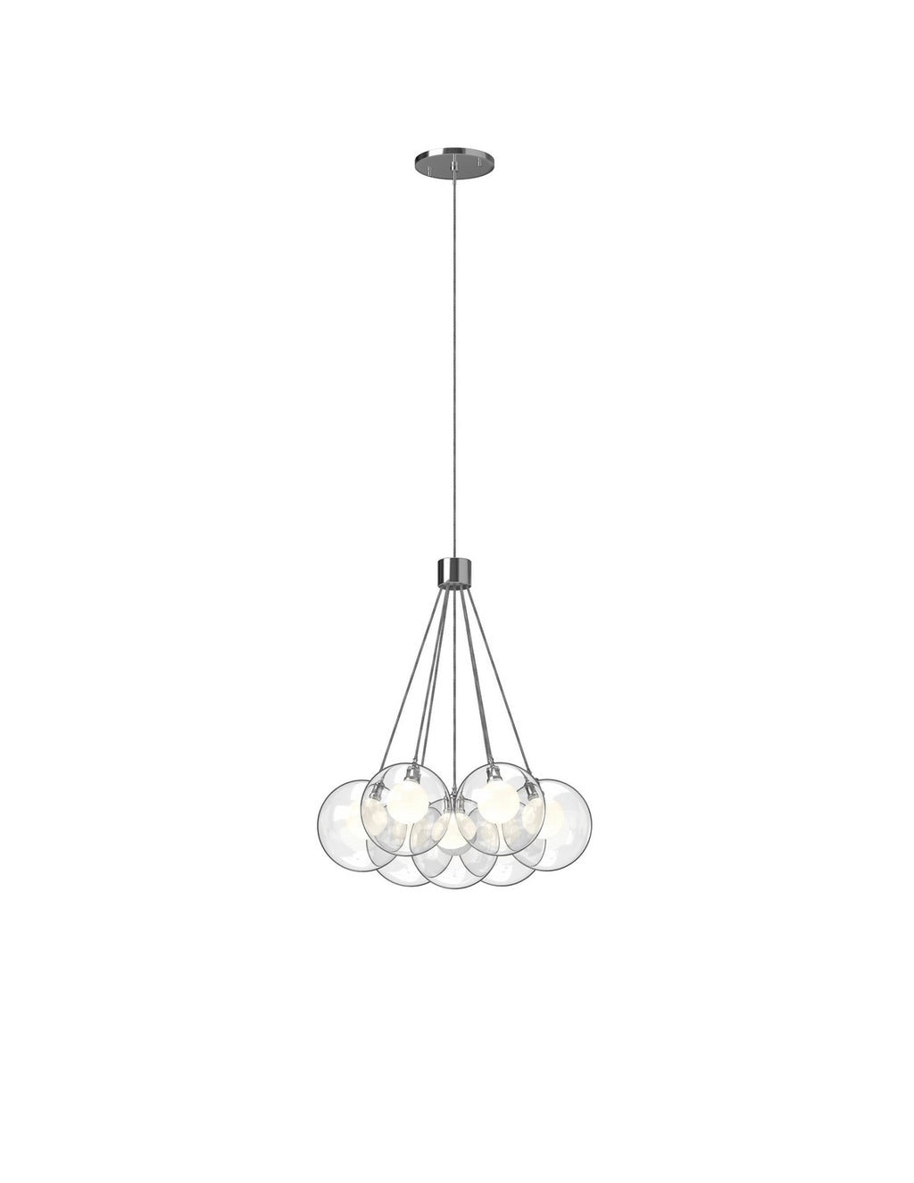 Produced in an array of configurations, the Bolla series is defined by the iconic double-wall glass globes. A frosted globe is perched within a transparent orb producing diffuser light from the satin aluminum LED socket. While elegant as a single pendant, the optional clustered bouquet creates a stunning impact.
